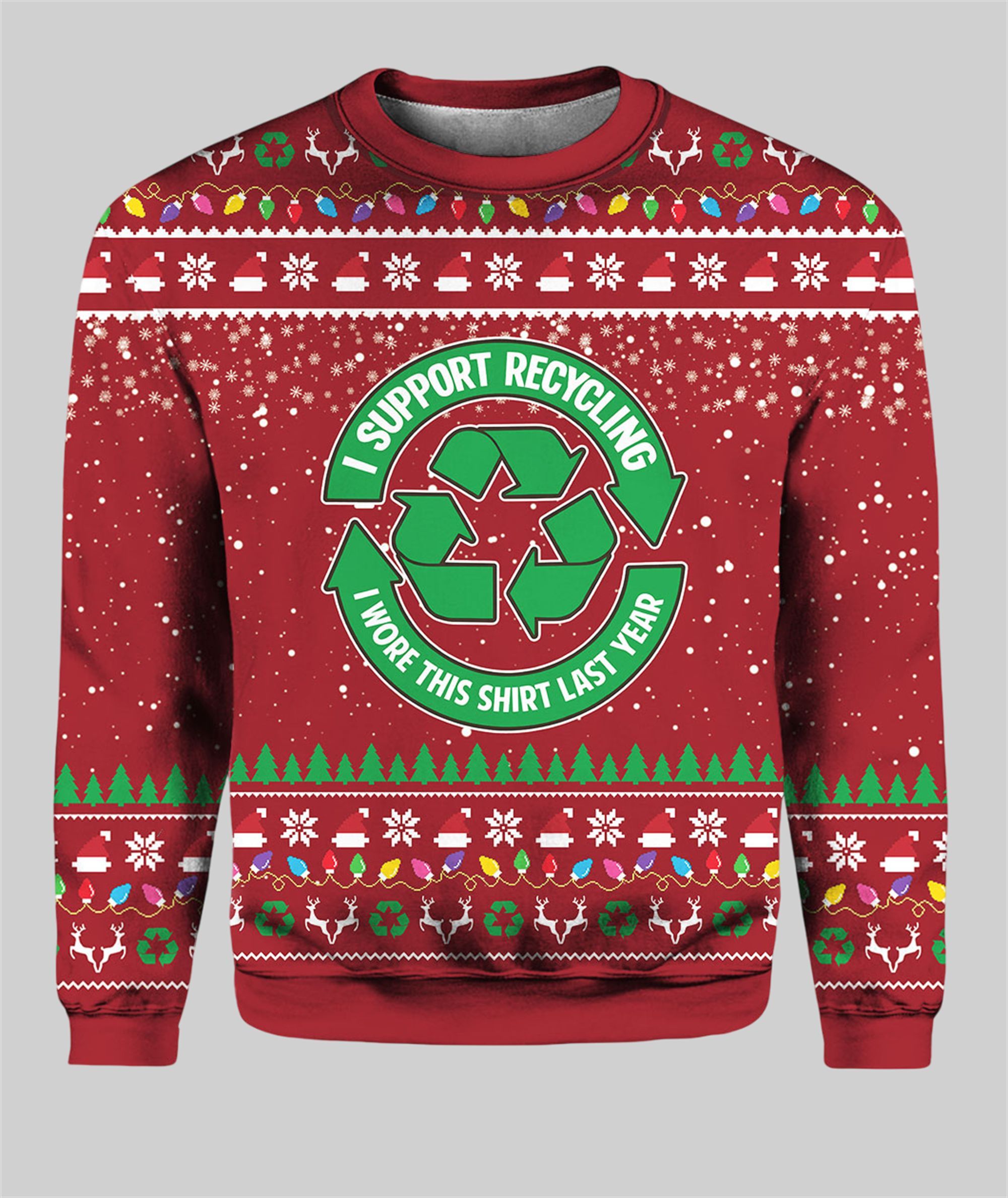 2025 I Support Recycling Ugly Sweater Christmas | Funny & Eco-Friendly