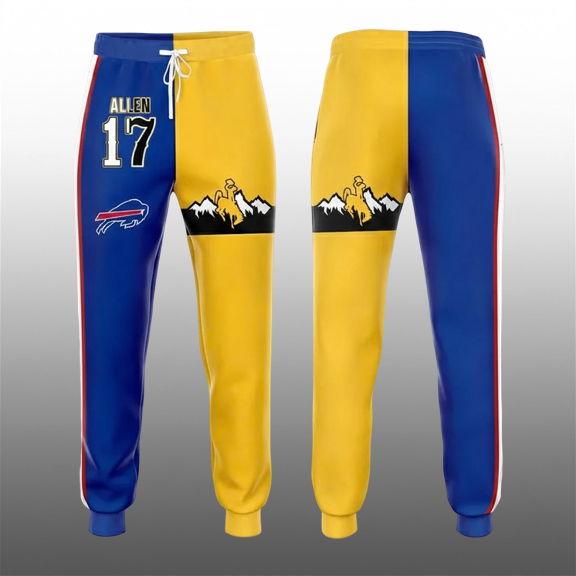 The 2025 Josh Allen Bills x Wyoming Hoodie is designed for the true connoisseur of football history. Most fans own a standard jersey, but only the most dedicated appreciate the path Josh Allen took to greatness. This hoodie visually represents that path. The right side features the vibrant Gold of the Wyoming Cowboys, complete with the iconic “Bucking Horse and Rider” silhouette—a nod to the college career that put Allen on the map. The left side transitions into the bold Royal Blue of the Buffalo Bills, featuring the charging buffalo logo and the striping. It is a harmonious clash of two worlds, united by the number 17.
