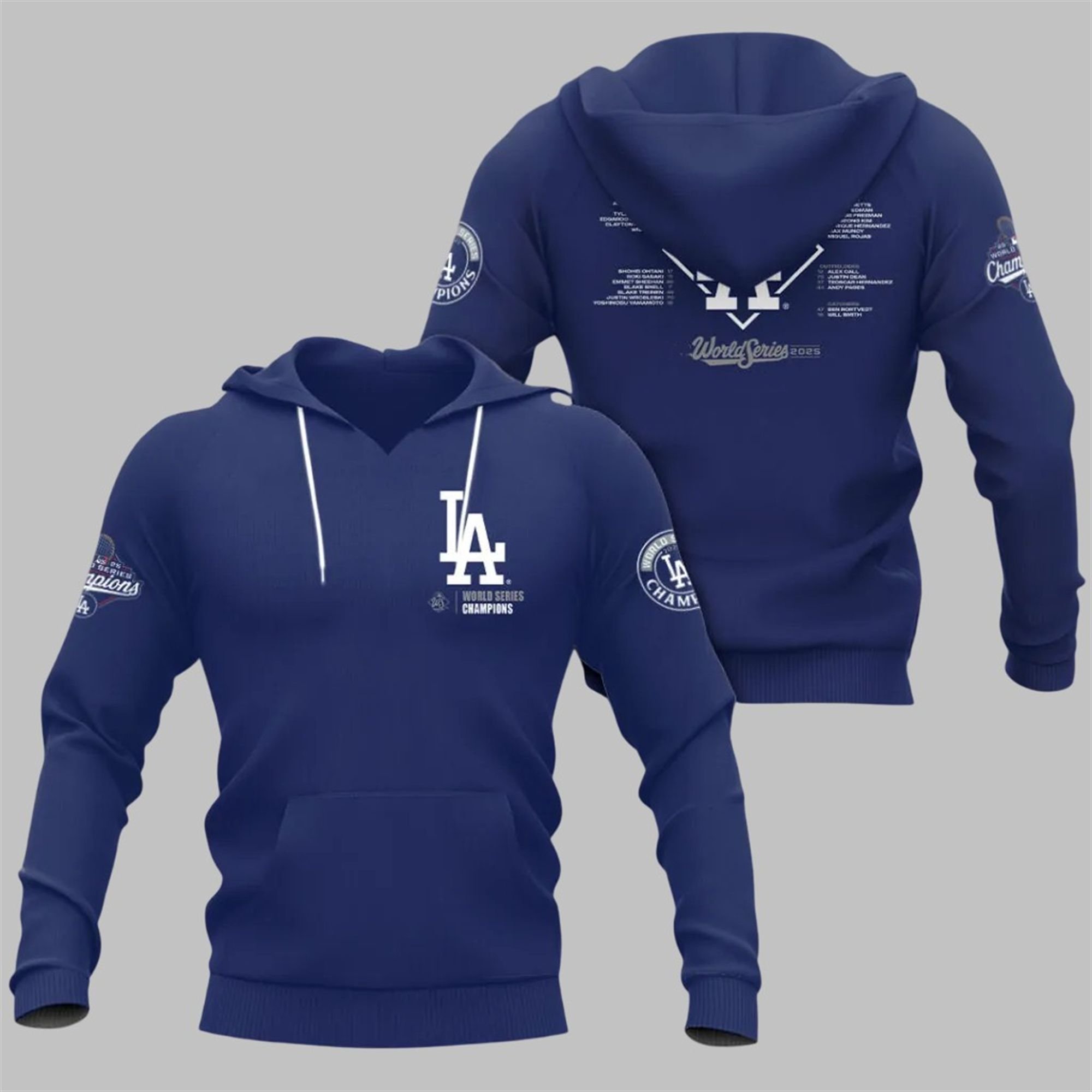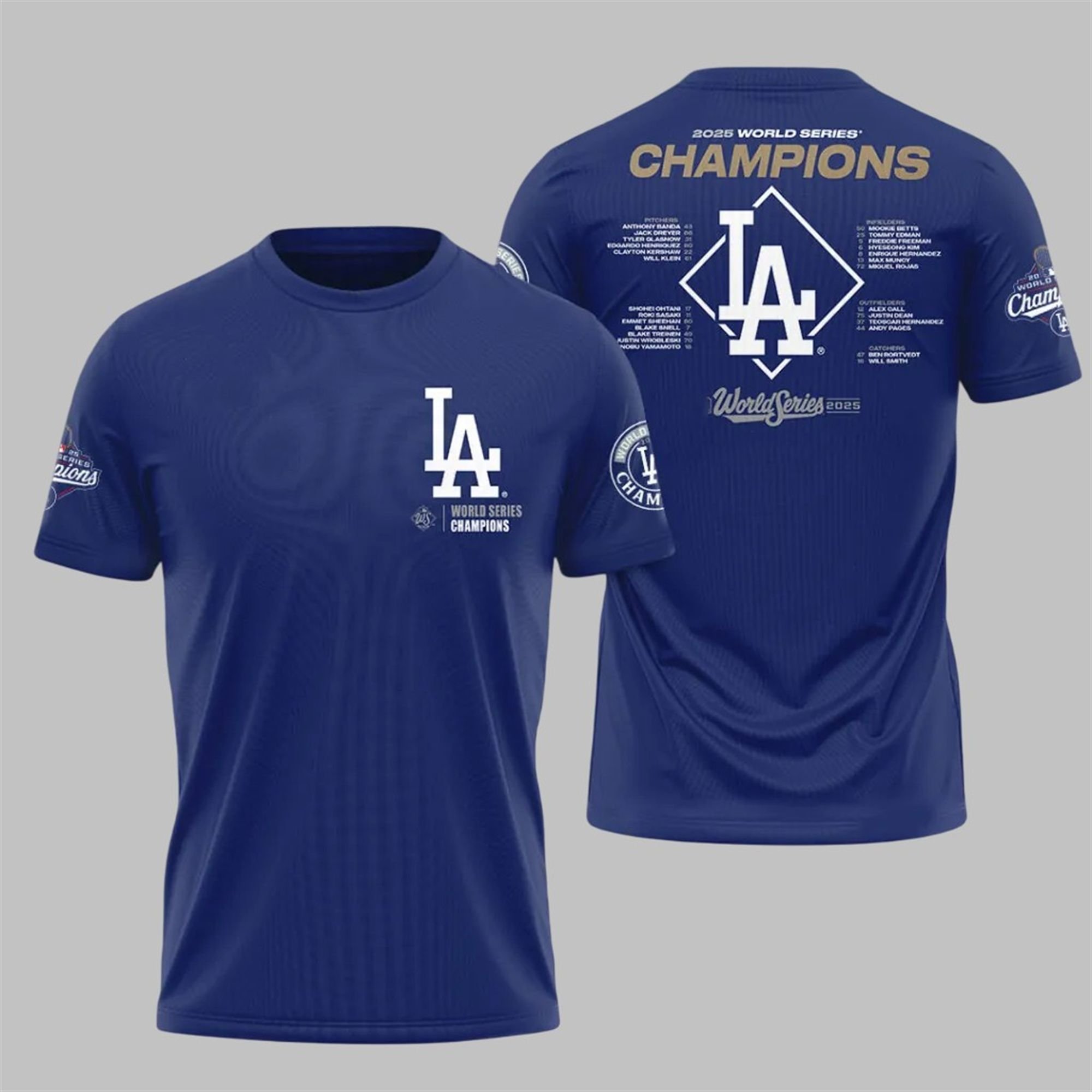 This t-shirt is more than just fabric and ink; it’s a story. The front proudly displays the iconic “LA” logo, crowned with the hard-earned title: “2025 World Series Champions.” The design is bold, timeless, and unmistakable. But the real treasure for the true fan is on the back. This shirt features the complete championship roster, immortalizing every player who contributed to this legendary run. It’s a wearable monument to the team that conquered all, set against the 2025 World Series Champions insignia.