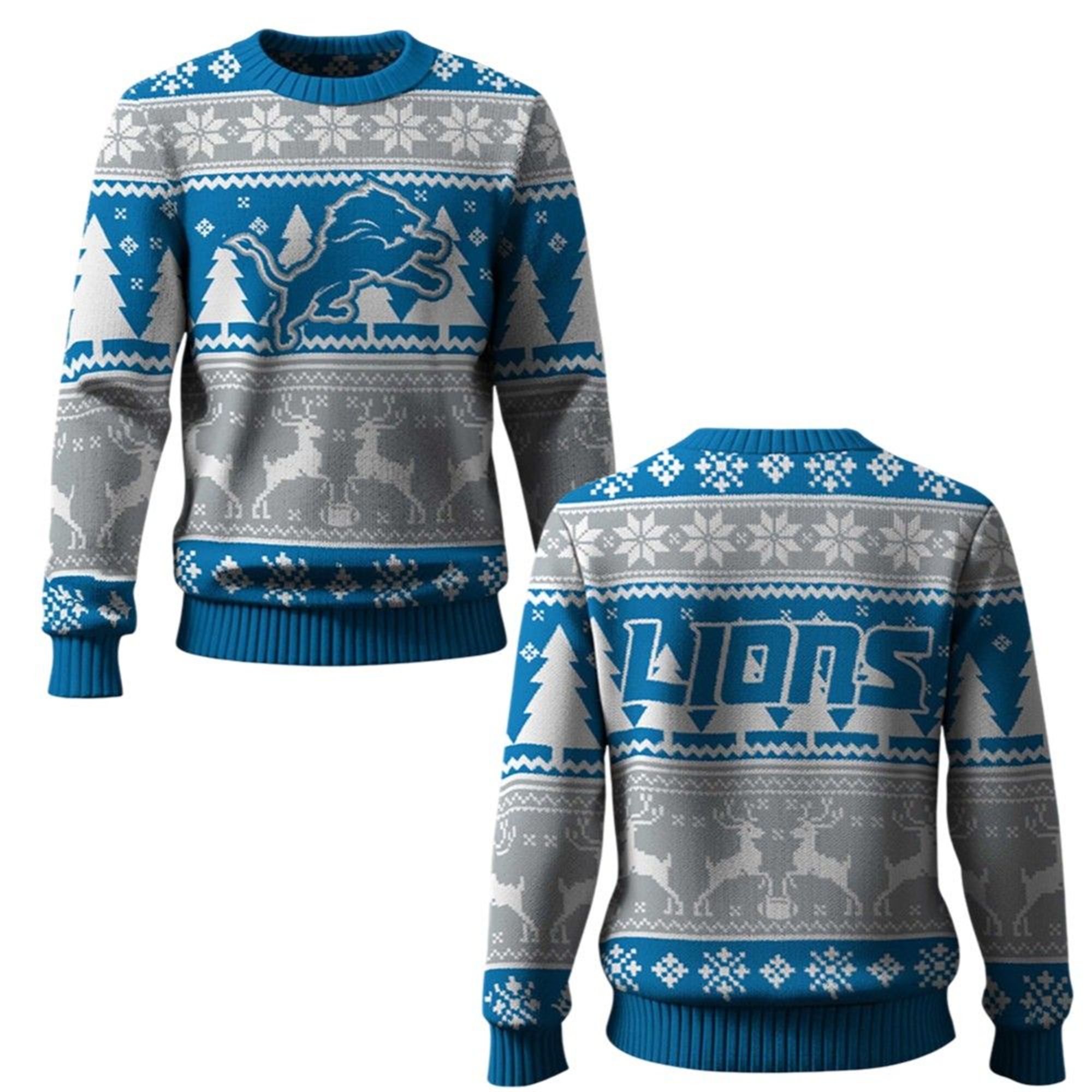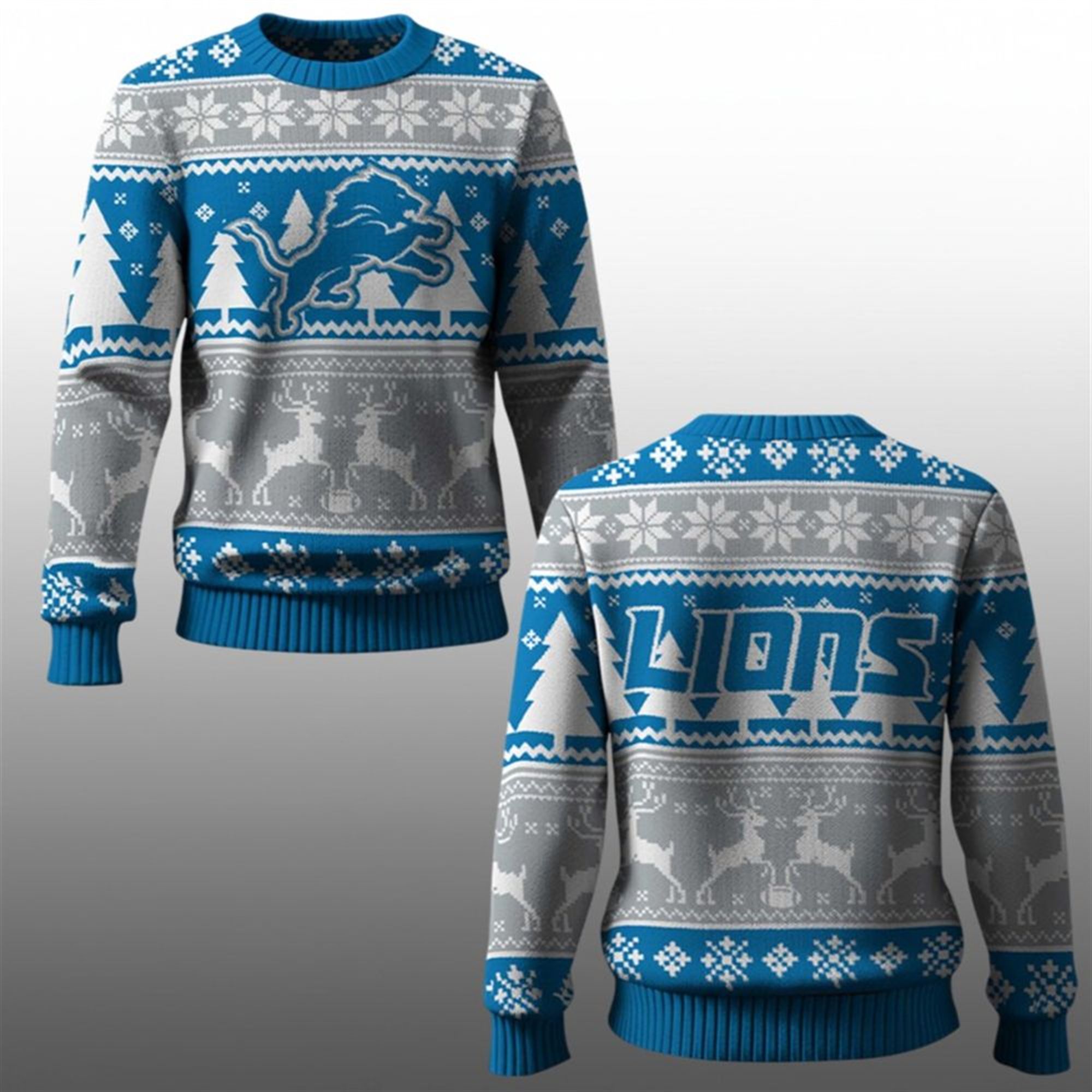 2025 Lions Reindeer Football Christmas Ugly Sweater | Show Your Support