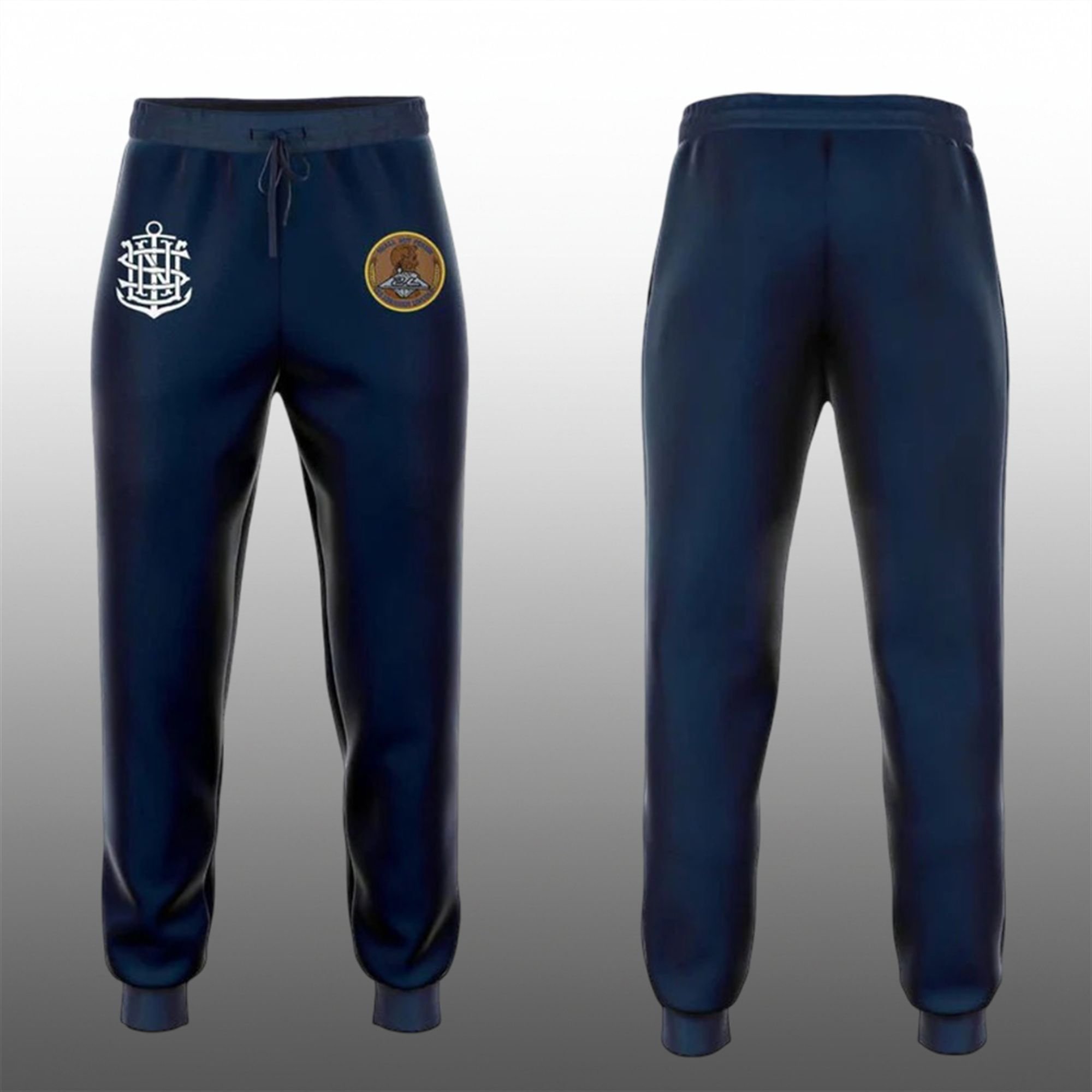 The Front: Features the classic “NAVY” block lettering above a massive, stylized anchor housing the interlocking “USN” logo—a symbol recognized worldwide. A commemorative commemorative crest adorns the left chest, balancing the “A” star logo on the right.
