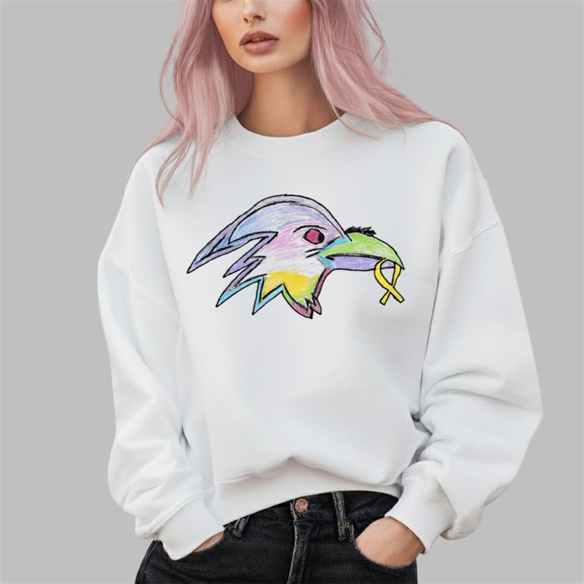 What sets the 2025 edition apart is its stunning and emotive design. The iconic Ravens head logo is reimagined in a vibrant, free-flowing artistic style reminiscent of a colored pencil sketch. This “Art of Hope” approach gives the fierce logo a touch of humanity and softness, reflecting the personal nature of the fight against cancer. The multi-colored fill within the logo subtly represents the various cancer awareness ribbons, while the prominent yellow ribbon of hope held in the raven’s beak serves as a central symbol of strength and optimism.