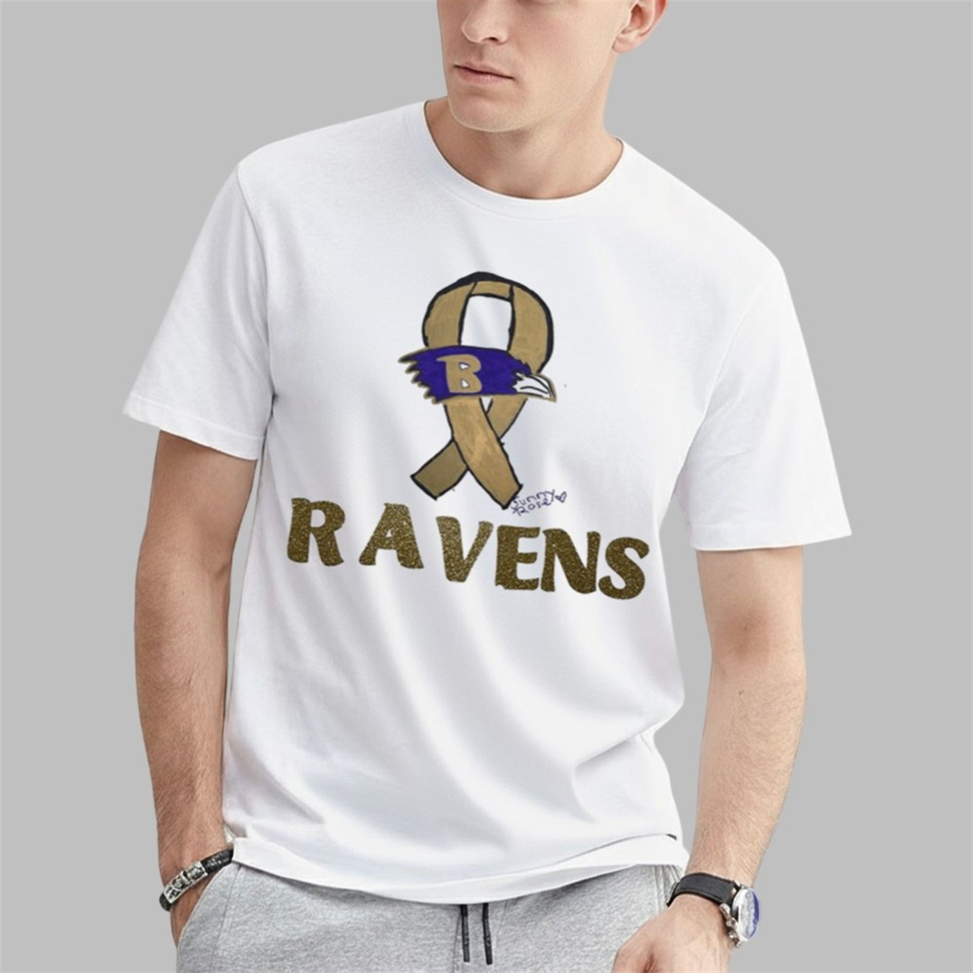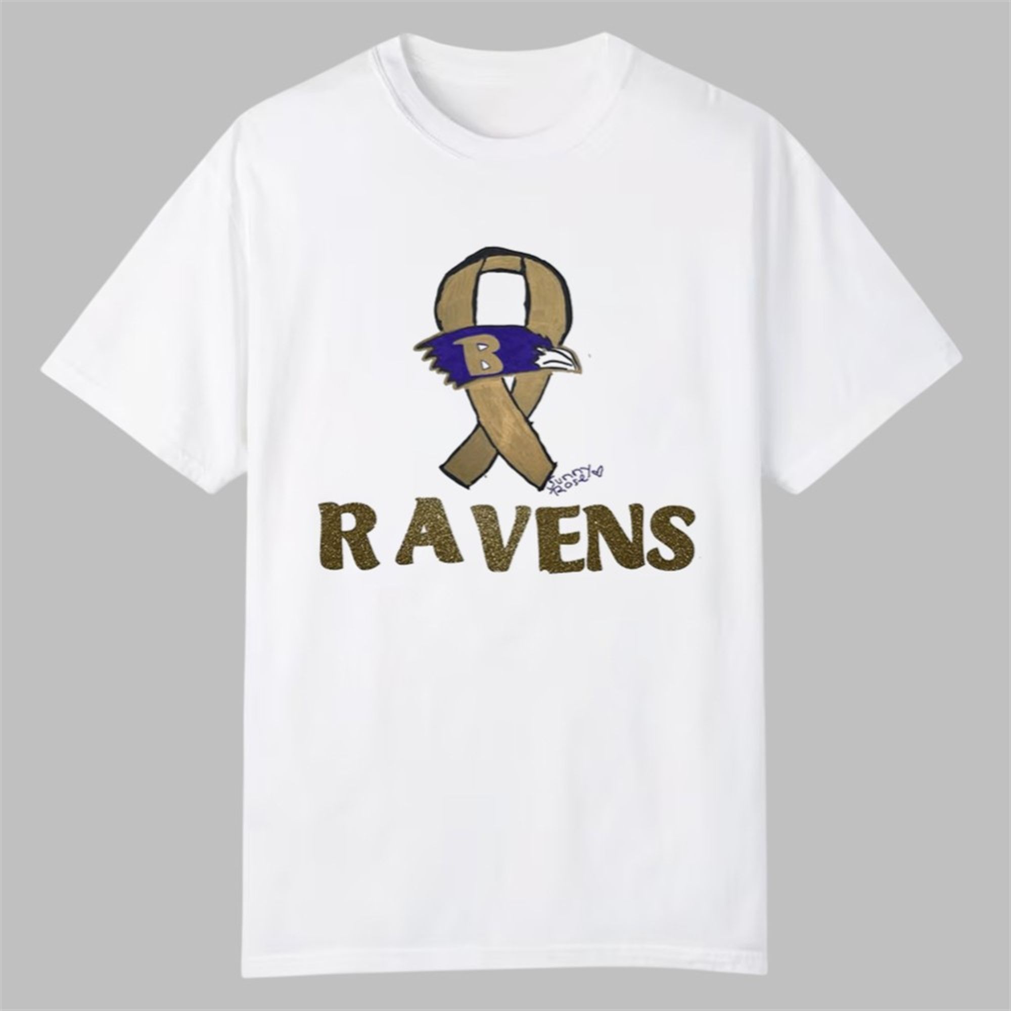 What sets this 2025 edition apart is the poignant design by emerging artist Sunny Rose. The shirt features a beautifully rendered awareness ribbon, drawn with an authentic, heartfelt touch that evokes a sense of personal connection and hope. Superimposed over this symbol of strength is the fierce Baltimore Ravens logo, seamlessly integrating team spirit with the shirt’s powerful message. Below, the word “RAVENS” is displayed in a custom, textured gold font that shines with optimism. The small, integrated “Sunny Rose” signature marks this as a unique collector’s item for the 2025 season. This thoughtful design moves beyond typical sports apparel, offering a stylish and meaningful way to express your support.