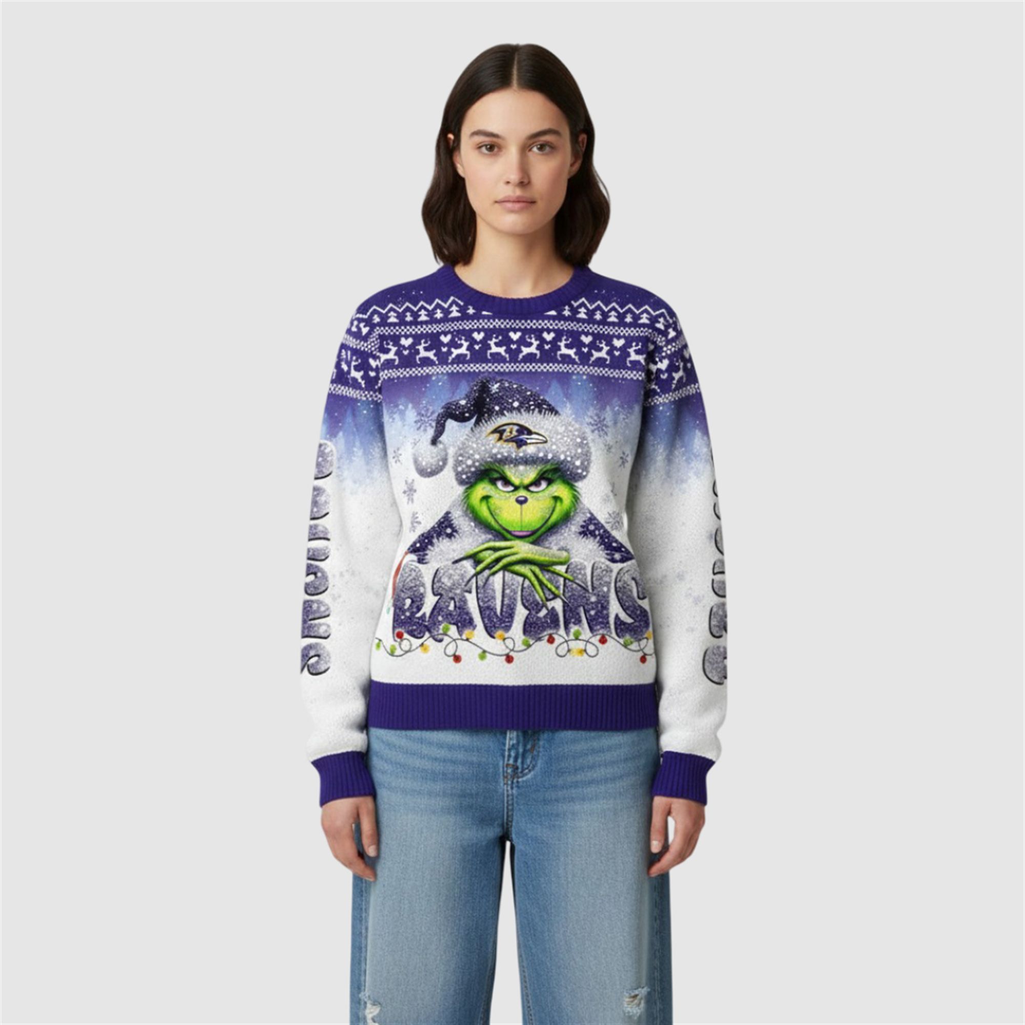 2025 Ravens Grnch Season Christmas Ugly Sweater | Steal the Game