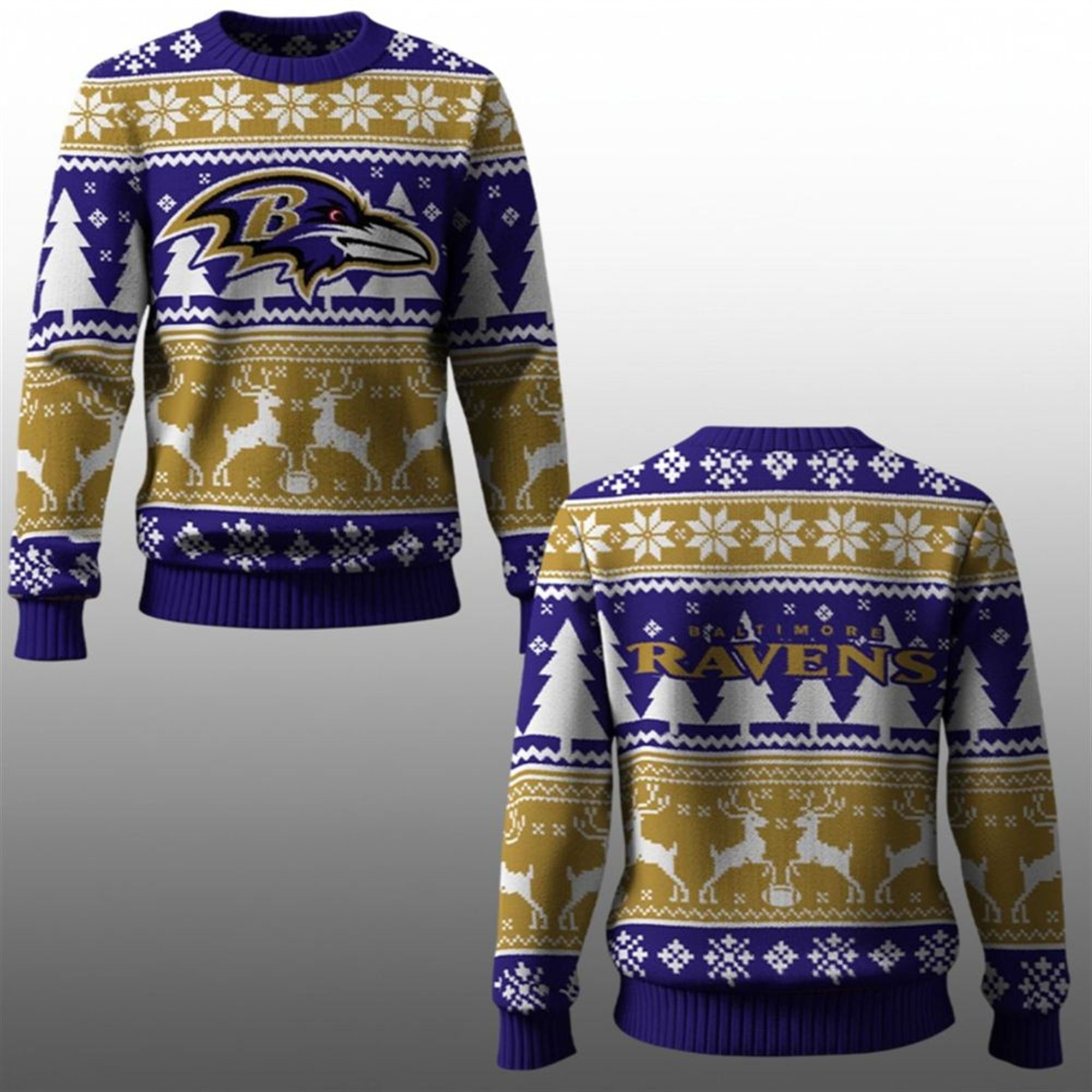 The 2025 Baltimore Ravens Reindeer Ugly Sweater is a vibrant homage to one of the most passionate fanbases. This isn’t just a piece of clothing; it is a wearable banner of pride. The design features a striking, all-over print that mimics the nostalgic look of traditional knitted wool sweaters but offers the modern comfort of premium synthetic blends.