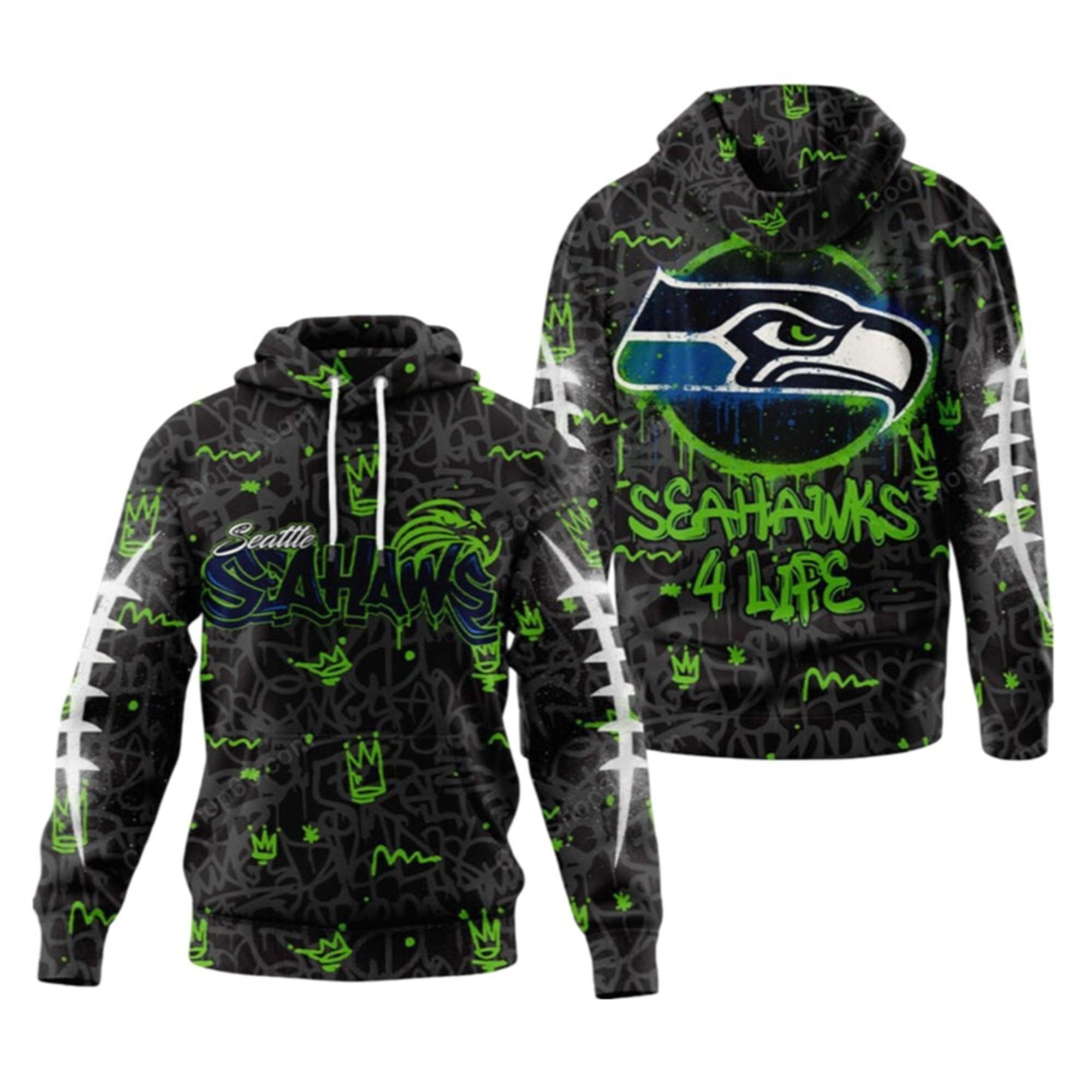 Forget the generic, cookie-cutter fan gear. The 2025 Seahawks Graffiti For Life Hoodie is a revolution in fan apparel, designed for the 12th Man who demands as much style from their gear as they do performance from their team. This hoodie is a masterpiece of street art-inspired design, blending the iconic Seahawks identity with the raw, rebellious energy of graffiti culture.