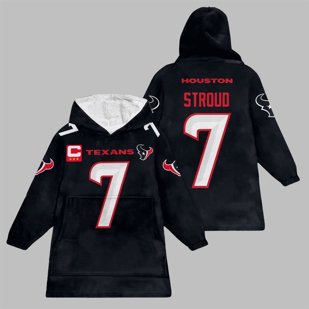 2025 Stroud 7 Captain Texans Football Blanket Hoodie | Wrap Yourself in Texans Pride