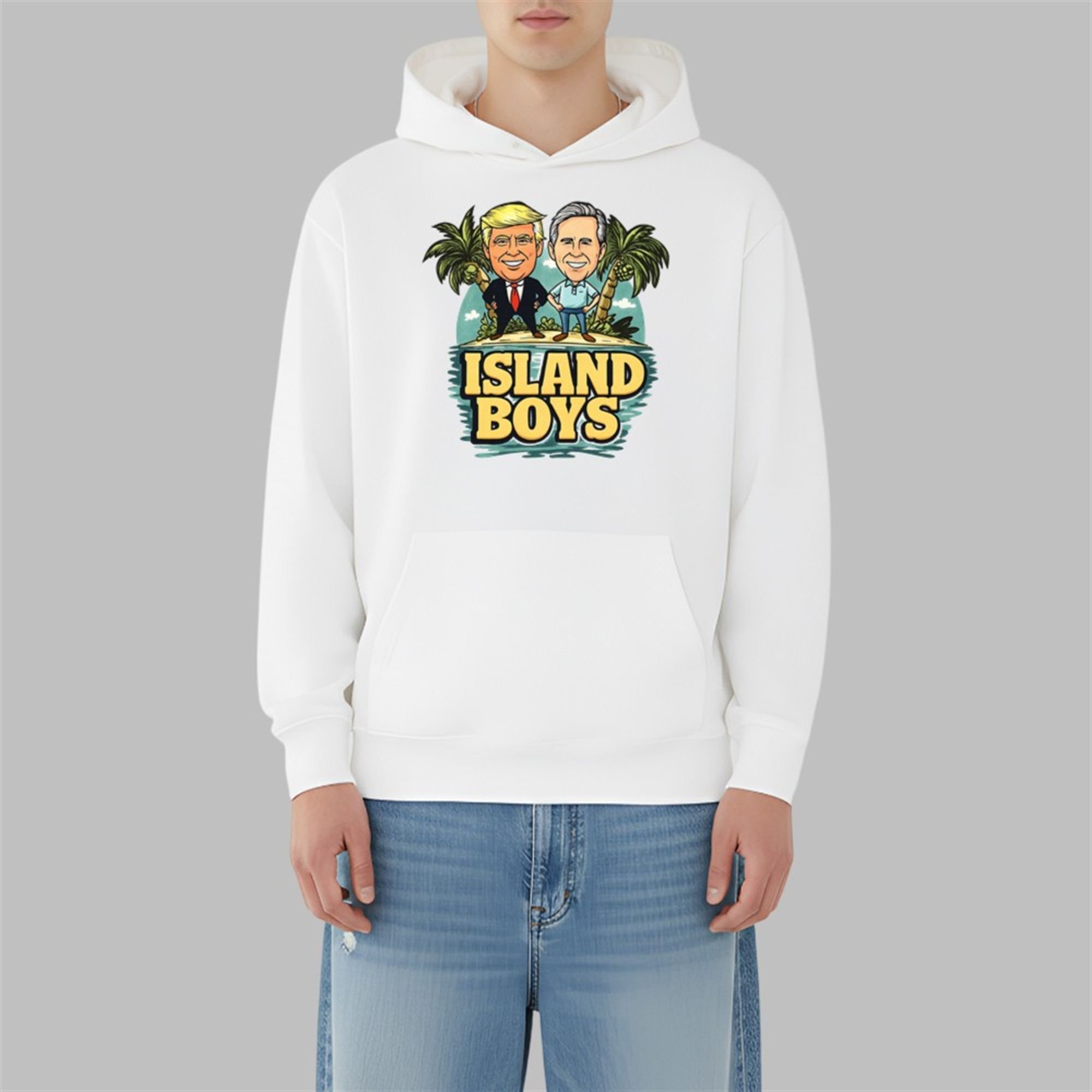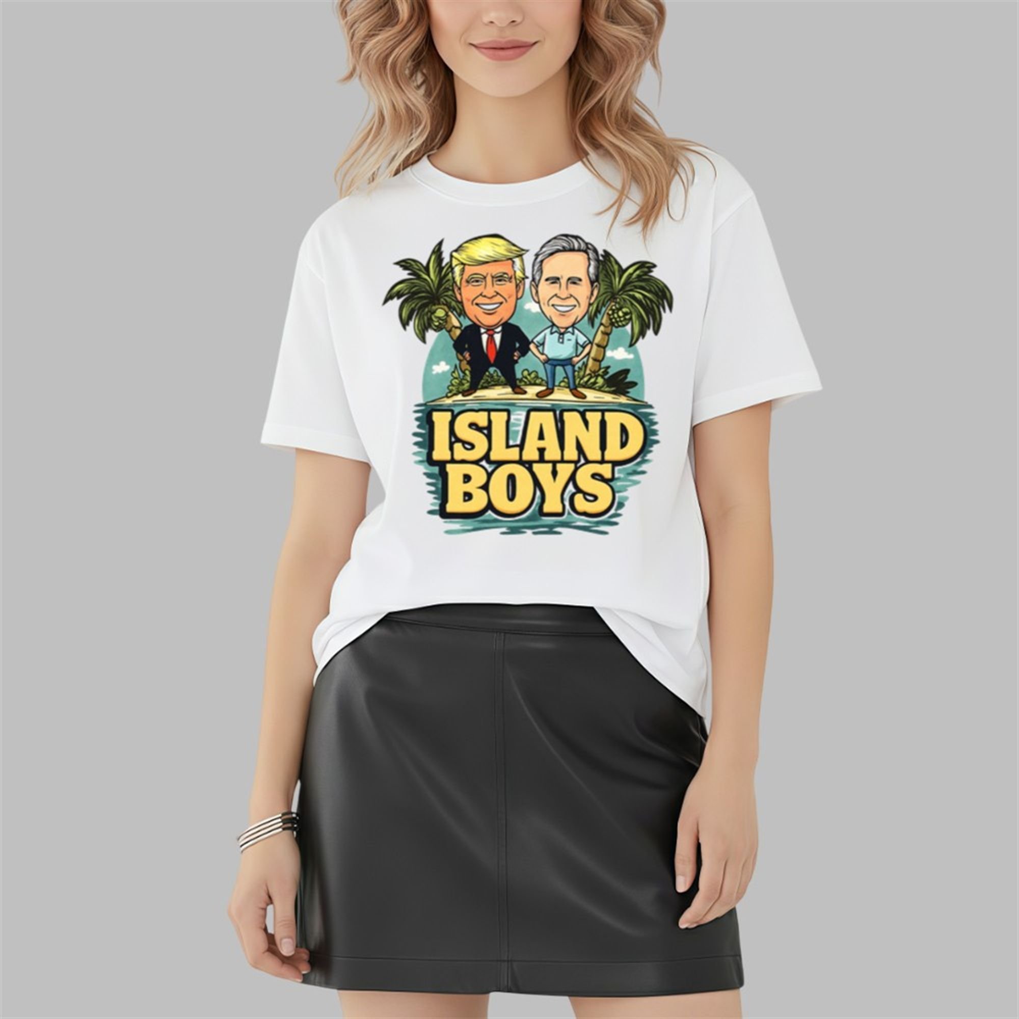 This isn’t just another political t-shirt; it’s a premium piece of wearable satire. It’s the perfect snapshot of the bizarre “what-if” scenarios that political commentators and late-night hosts dream of. Featuring a vibrant, full-color cartoon, this shirt is designed for those who appreciate the absurdity of it all. The bold, retro “ISLAND BOYS” text completes the look, creating a perfect parody that’s both instantly recognizable and brilliantly absurd.