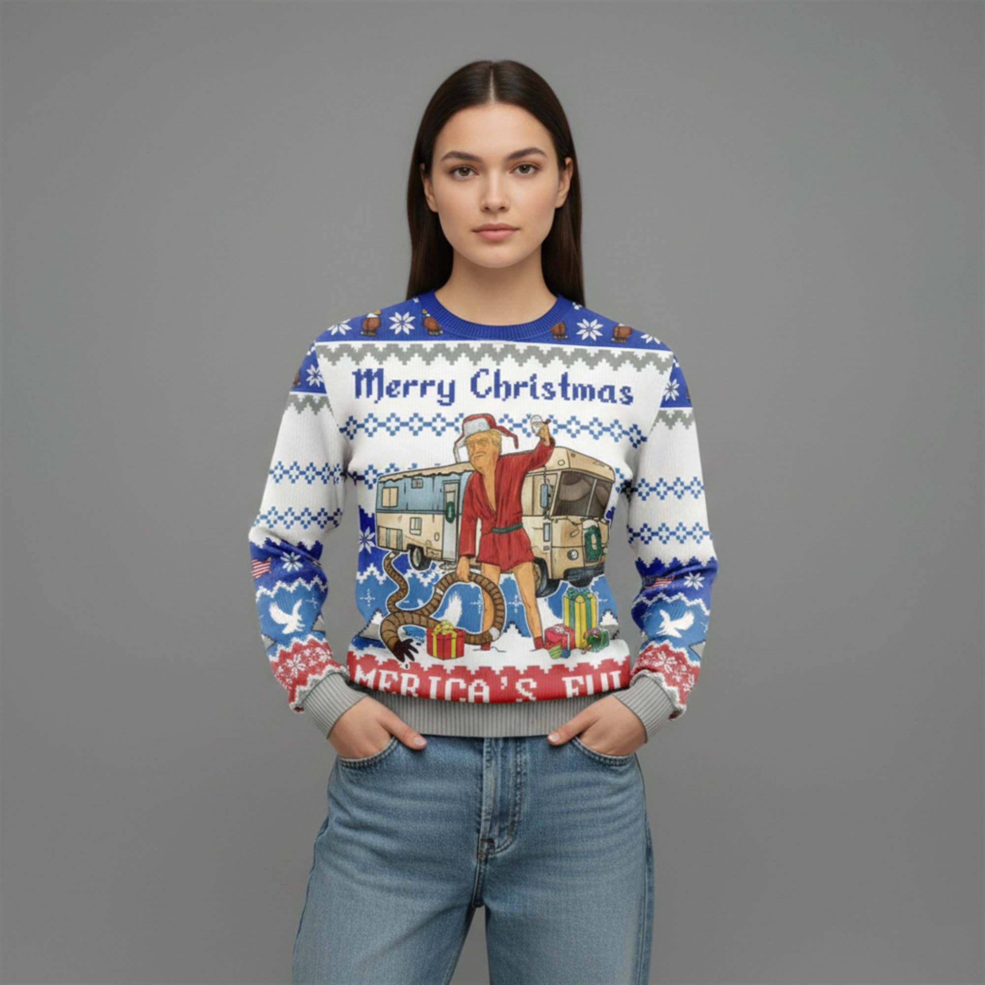 The holiday season is about tradition, laughter, and making memories. This year, shake up the status quo with the 2025 Trump Merry Christmas Americas Full Ugly Christmas Sweater. This garment is a masterclass in satire, merging the recognizable imagery of Donald Trump with the chaotic energy of Cousin Eddie from National Lampoon’s Christmas Vacation.