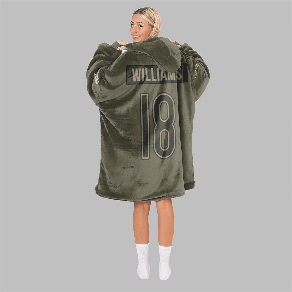 Step into a new realm of fan comfort and unwavering team spirit with the 2025 Williams 18 Bears Football Blanket Hoodie. Designed in a stylish, military-inspired olive green, this blanket hoodie not only showcases your support for the Bears and star player Williams but does so with a modern aesthetic that stands out in any crowd.