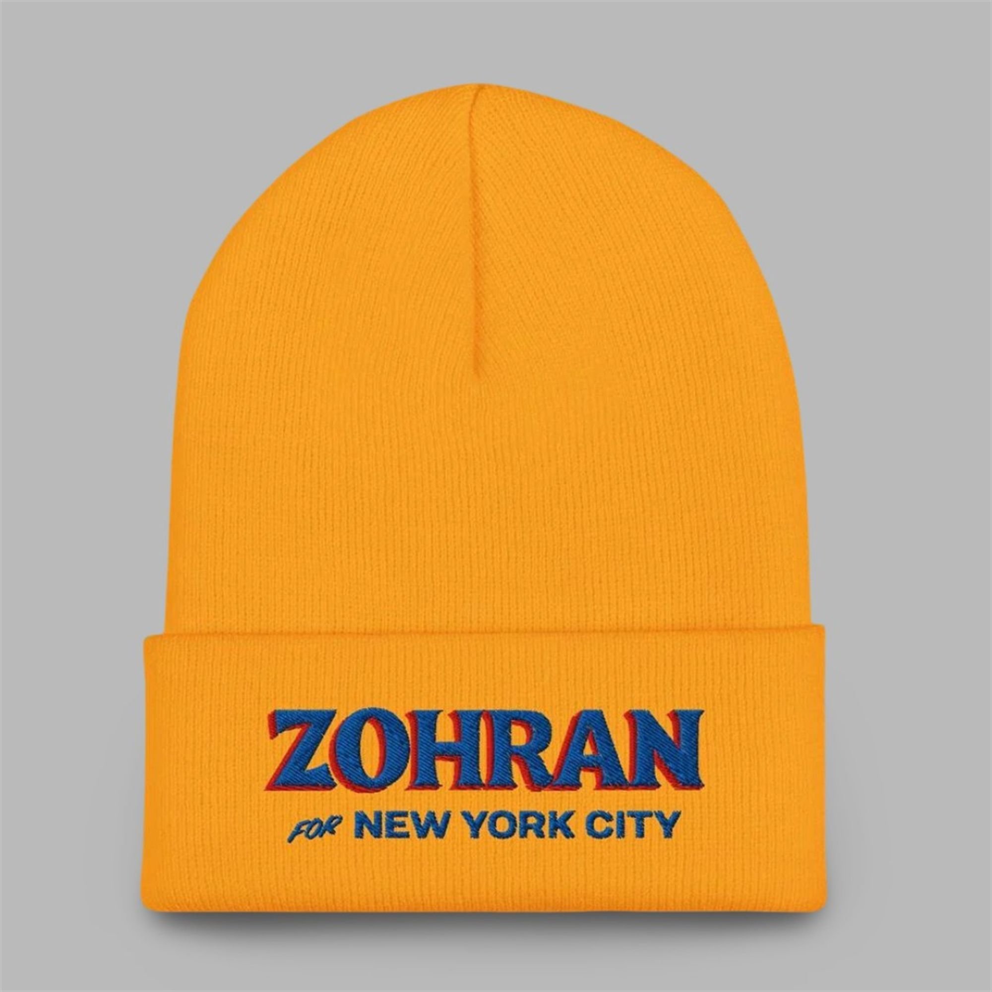 The centerpiece is the high-density, three-dimensional embroidery. The iconic “ZOHRAN” text is rendered in bold, vibrant yellow and red, popping against the deep royal blue. This isn’t a cheap screen print; this is professional-grade stitching designed to last, ensuring your support looks as strong on day one hundred as it did on election night. The cuffed design provides an extra layer of warmth over the ears and allows for an adjustable, universal fit for all supporters.