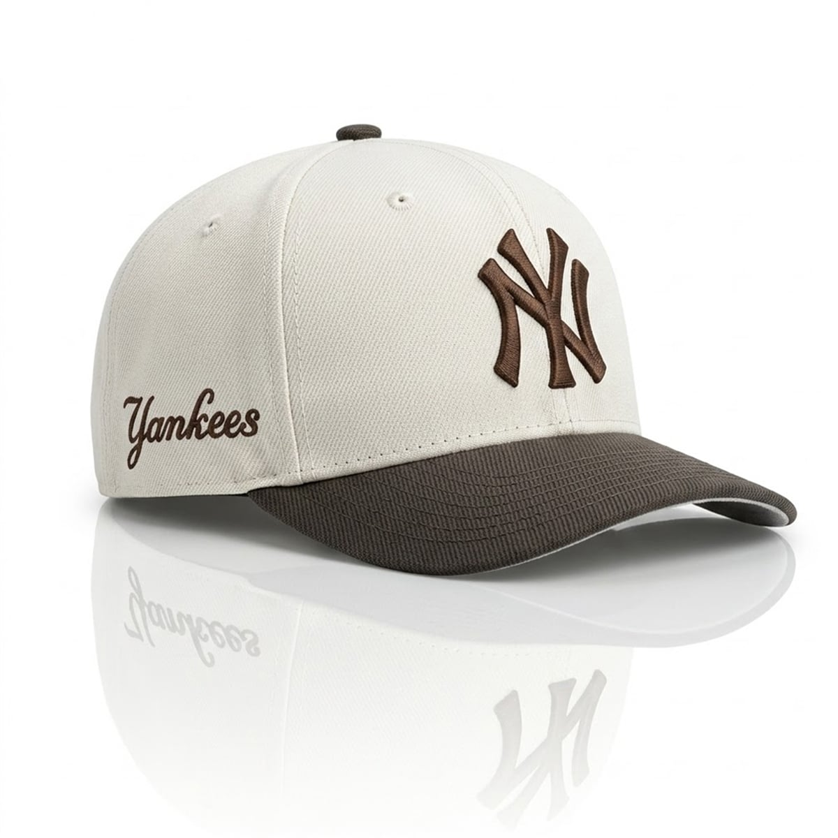 Visually striking and impeccably designed, this cap features a pristine, bright white crown that serves as the perfect canvas for the bold, dark interlocking “NY” logo. The contrasting dark brim creates a sophisticated two-tone color-blocking effect that frames the face perfectly and adds depth to any outfit. On the side profile, an elegant, cursive “Yankees” embroidery adds a touch of retro sophistication, setting it apart from standard-issue team gear. The structure offers a classic, structured athletic silhouette, ensuring it sits comfortably while maintaining its sharp, clean lines. It perfectly captures the confident, understated cool that Aaron Judge projects off the field.