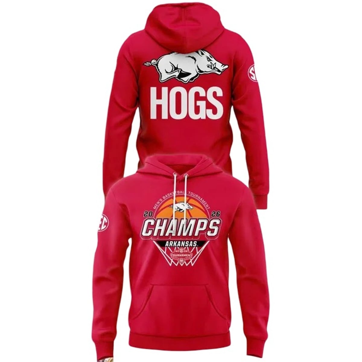 Beyond the bold colors and striking typography, this 2026 championship apparel represents the culmination of relentless effort, teamwork, and unyielding fan support. The prominent placement of “CHAMPS” over the basketball net symbolizes the final, victorious moment of the tournament—the cutting down of the nets. The oversized “HOGS” on the back reflects the collective voice of the Arkansas fanbase, famous for their deafening “Calling the Hogs” chant. Owning this item means carrying a piece of that collective euphoria and community pride that surged through Razorback Nation during the 2026 tournament.