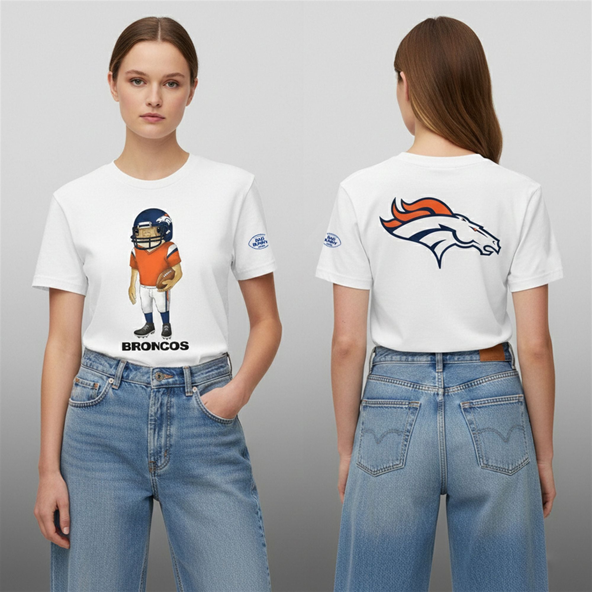 The shirt went viral because it perfectly capitalized on the “Benito Bowl” hysteria, merging the intensely loyal Broncos fanbase with the global Bad Bunny army. Social media algorithms favored the unexpected visual of the “Sapo Concho”—a symbol of Puerto Rican resilience—suddenly wearing an American football helmet, creating a meme-worthy yet fashionable image that transcended language barriers. It became an instant status symbol on TikTok, representing the ultimate flex for fans gearing up for the Super Bowl LX Halftime Show.