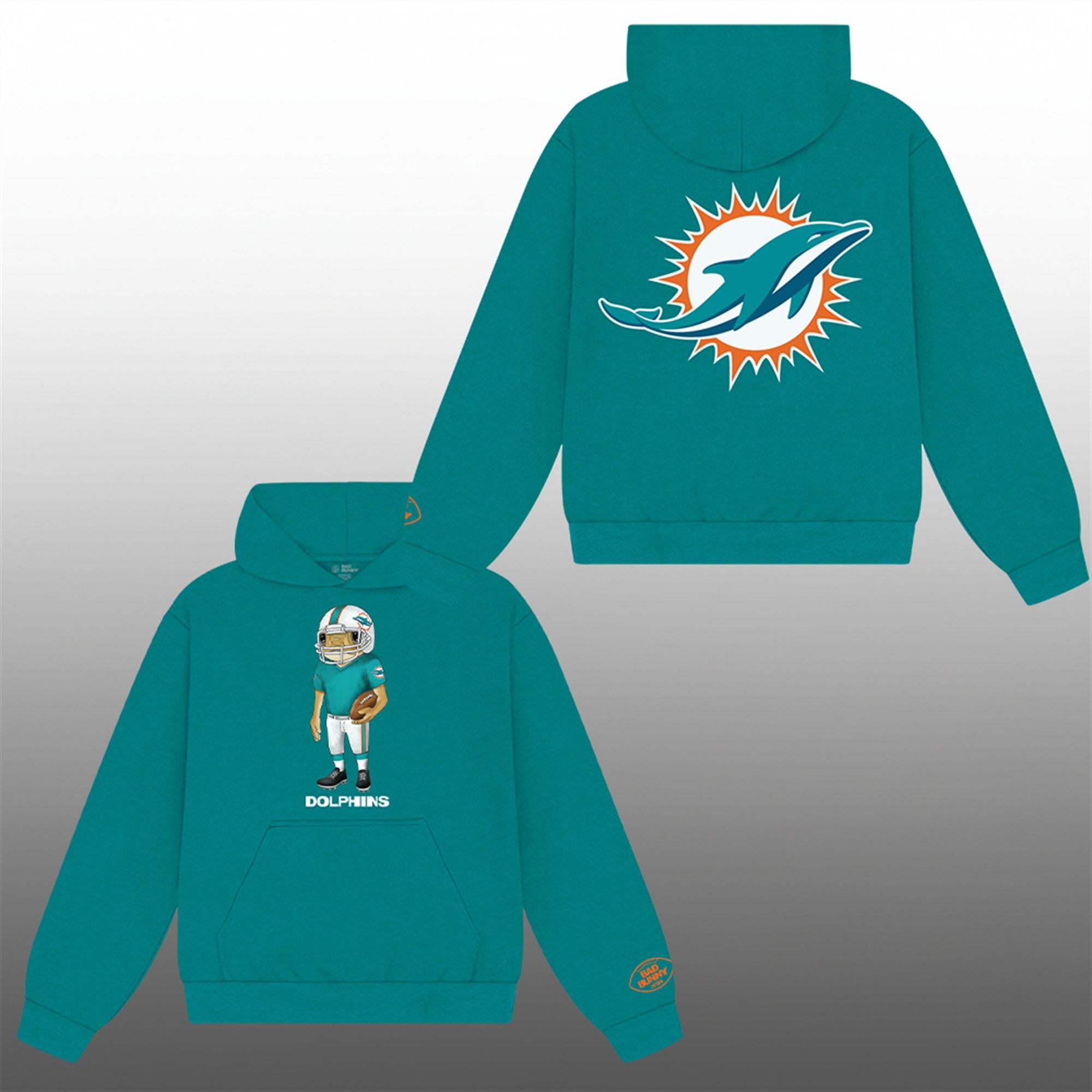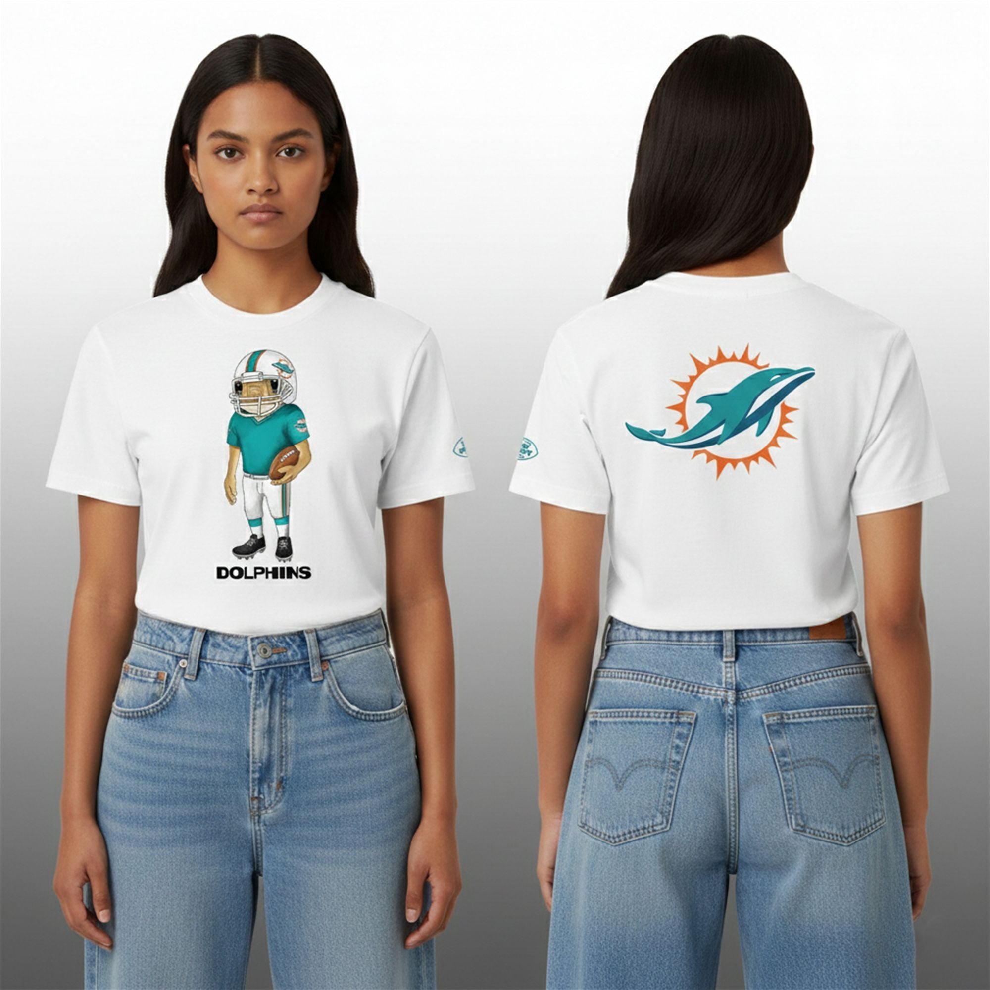 Flipping to the reverse, the shirt proudly displays the classic, oversized Miami Dolphins logo. This dual-sided design ensures that your allegiance is clear from both the front and back. It is not just about supporting a team or an artist; it is about celebrating the lifestyle that connects them. The design language speaks to the vibrant art deco history of Miami while embracing the modern, digital-first aesthetics of 2026’s music scene.