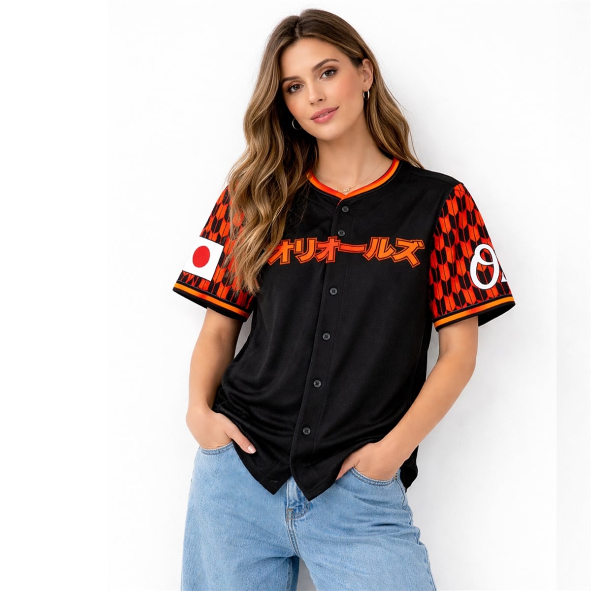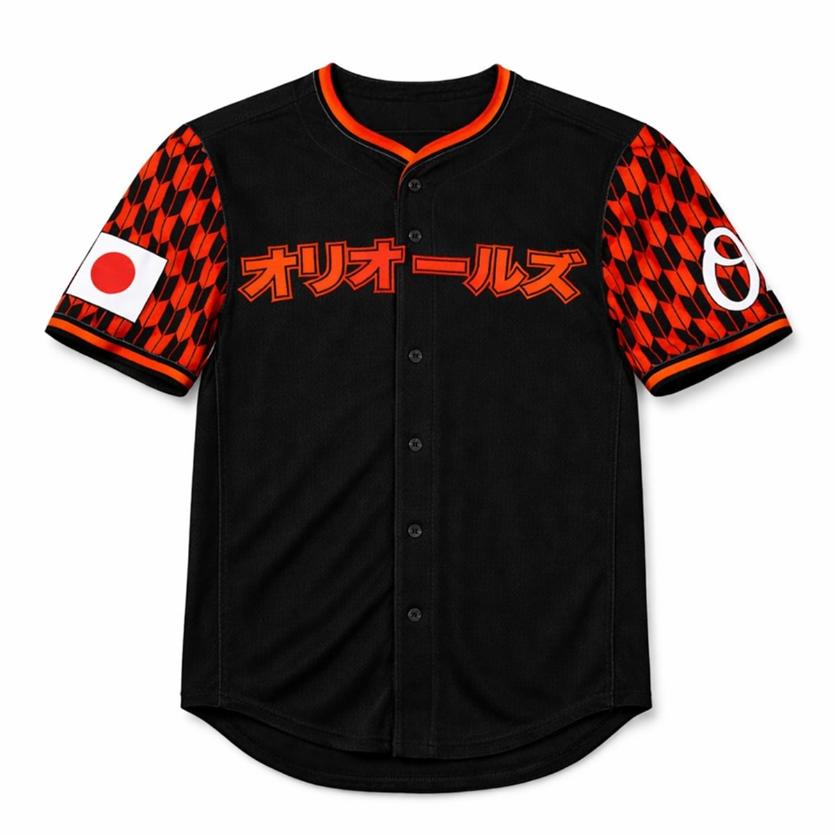 Completing the aesthetic, the right sleeve proudly displays the Hinomaru (the Japanese national flag), while the left sleeve is anchored by the classic Orioles ‘O‘ logo, creating a perfect visual balance of two distinct baseball cultures uniting.