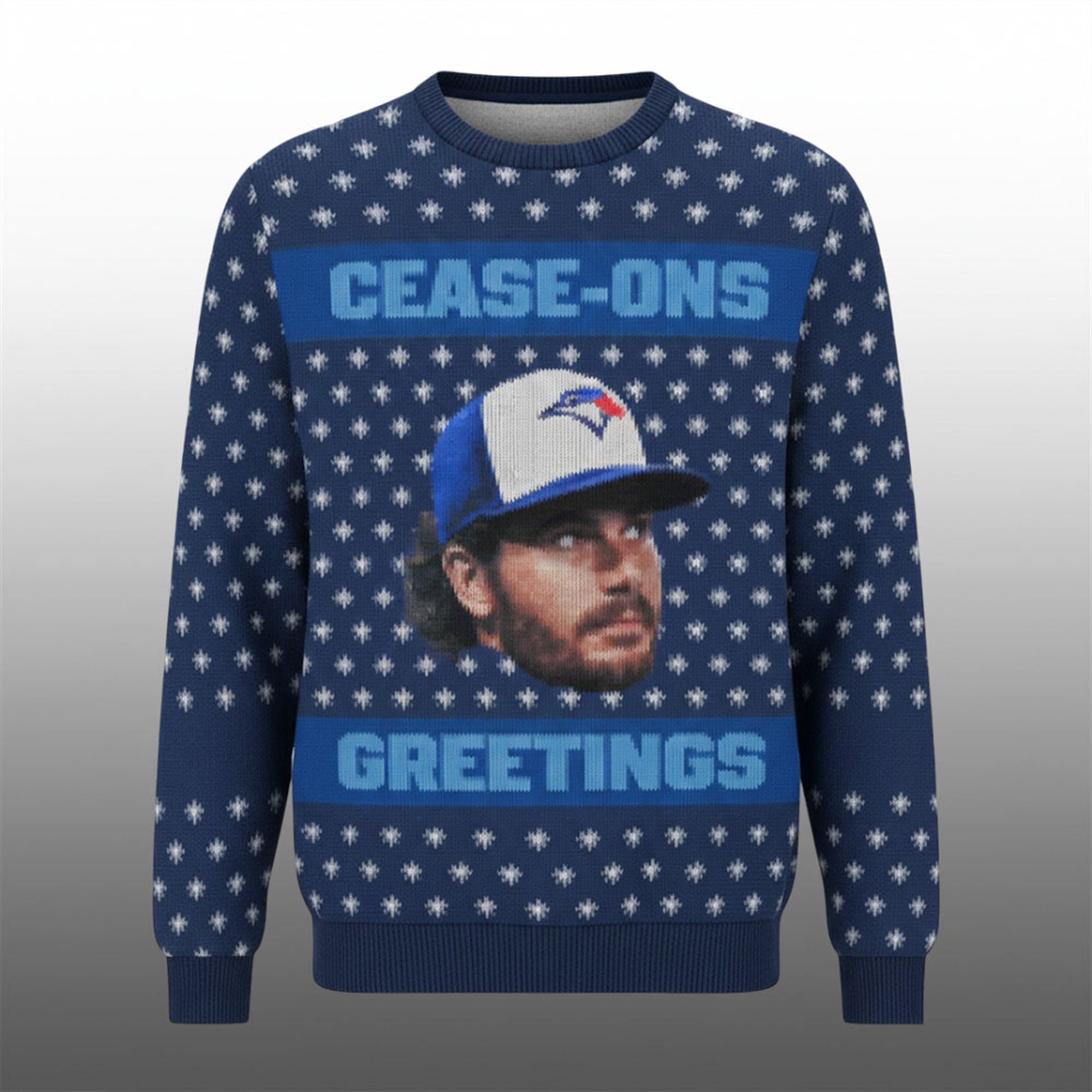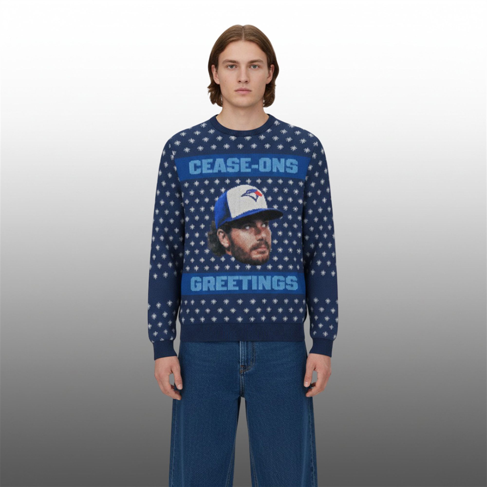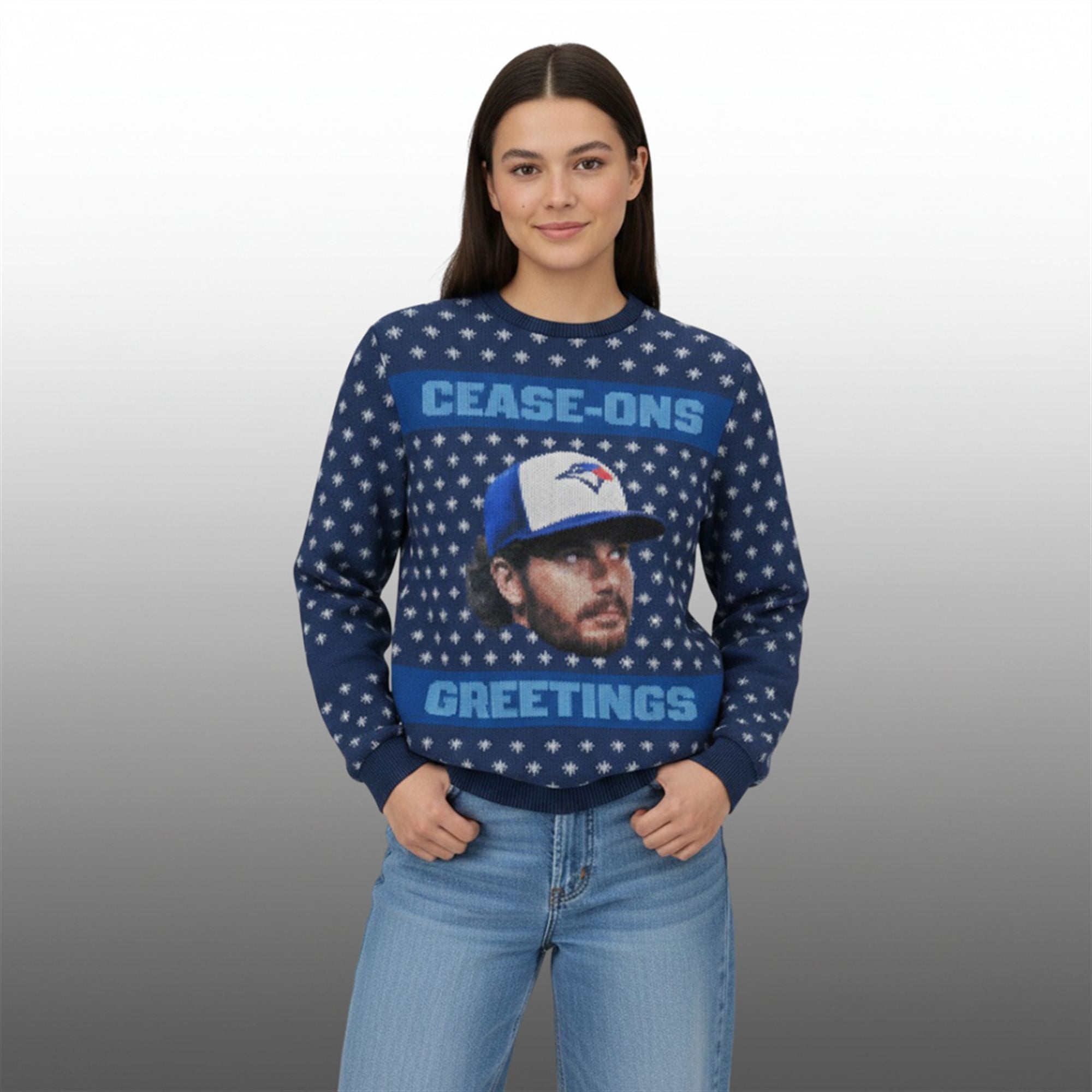 2026 Blue Jays Dylan Cease Gease Ones Greetings Ugly Sweater | The Ace of Holiday Apparel