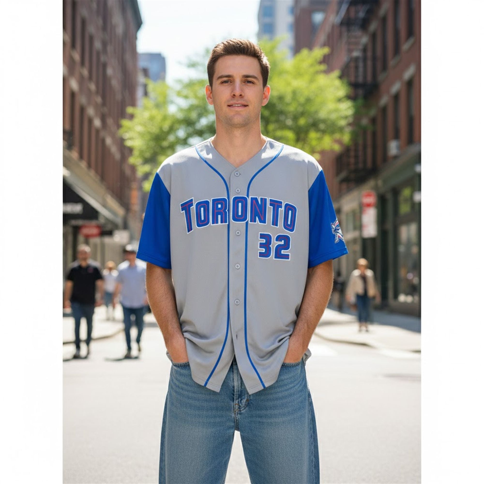 For years, fans have clamored for the return of the “Black Jay” era aesthetics, and the 2026 season delivers. This jersey features the distinct “TORONTO” block lettering across the chest in the classic mid-2000s font, outlined in royal blue and graphite. The two-tone construction, pairing a cool gray body with contrasting blue sleeves, instantly separates this jersey from modern home whites or powder blues. Emblazoned with Halladay’s retired Number 32 on the front and back, this item perfectly bridges the gap between old-school nostalgia and modern streetwear trends, making it a must-have for collectors and loyalists alike.