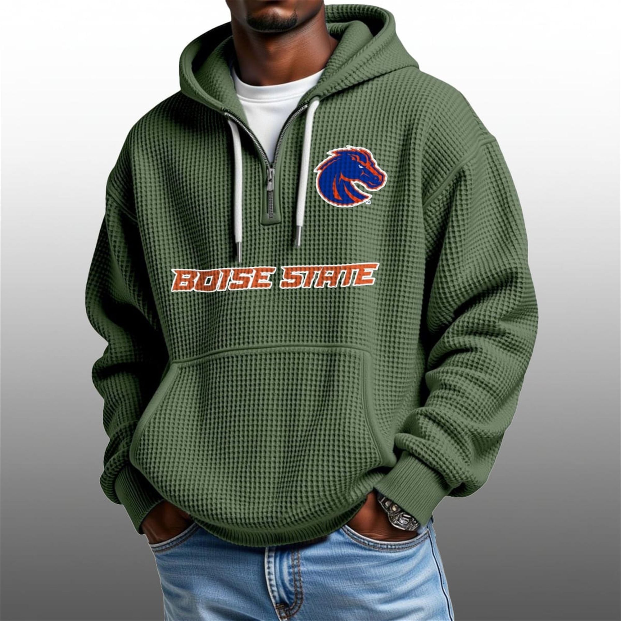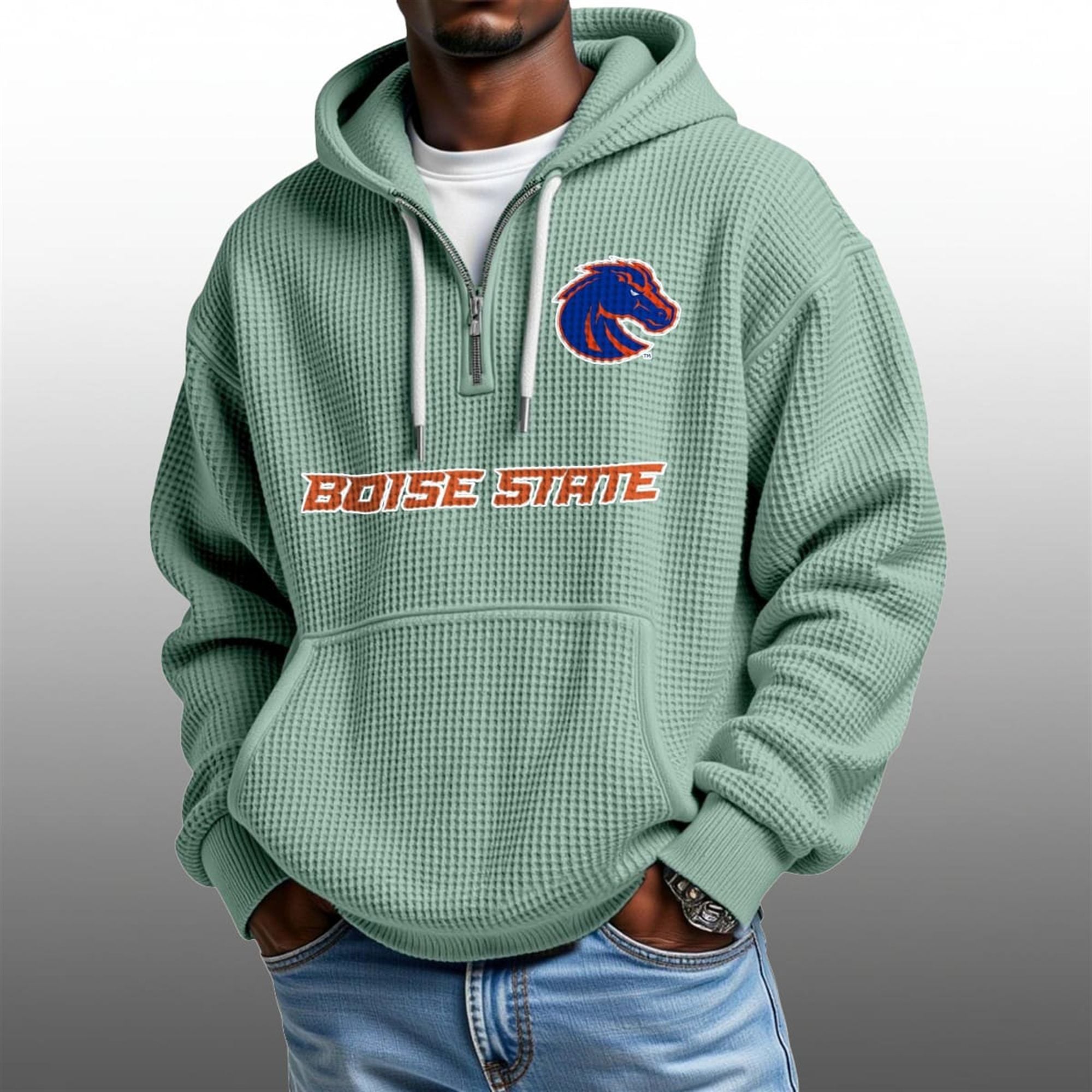 Step into the 2026 season with a fresh look that redefines game day comfort. The all-new 2026 Boise State Broncos Waffle Zip Hoodie moves beyond traditional team colors, offering a stylish Sage Green aesthetic that pairs perfectly with modern streetwear trends.