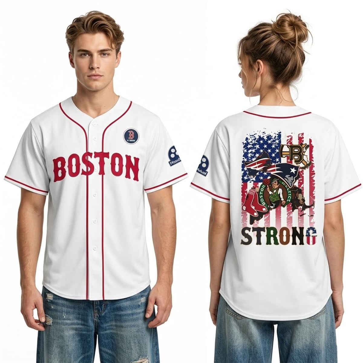The symbolism embedded in this design runs deep within the community’s modern history. The phrase “Boston Strong” emerged as a rallying cry of defiance, healing, and absolute unity. By layering the mascots and logos of the region’s four major sports teams over the American flag, the design illustrates how sports serve as a vital unifying force in times of both celebration and adversity. It visually communicates that while the teams may play on different fields, courts, and ice rinks, they all share the exact same unwavering hometown foundation.