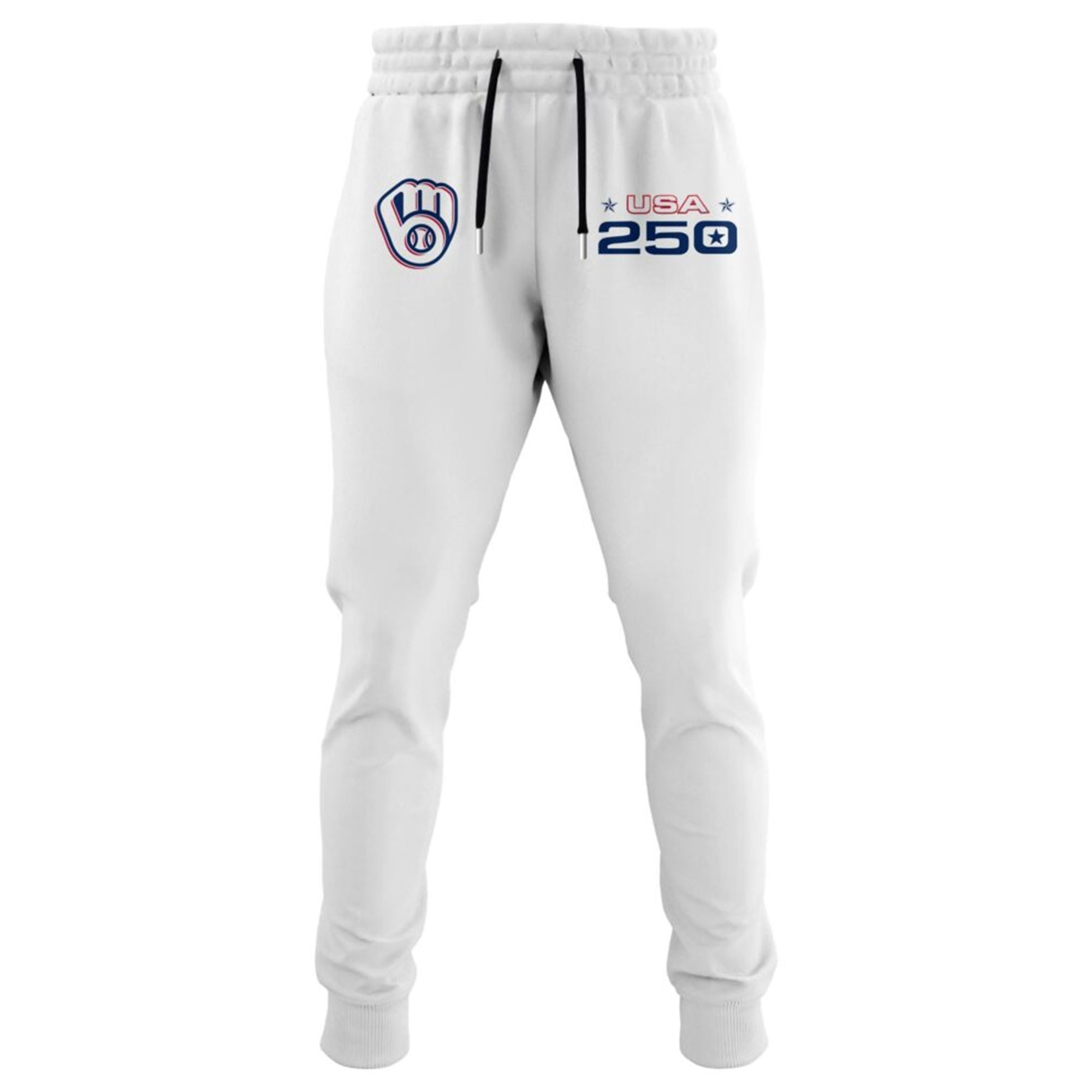 Every inch of this hoodie is engineered to make a statement. The front features the classic Brewers script logo, boldly centered, but with a twist: it is flanked by the “America 250” emblem on the chest and an American flag on the sleeve, creating a cohesive patriotic look. The iconic “Ball-in-Glove” logo anchors the design, reminding everyone where your loyalty lies.