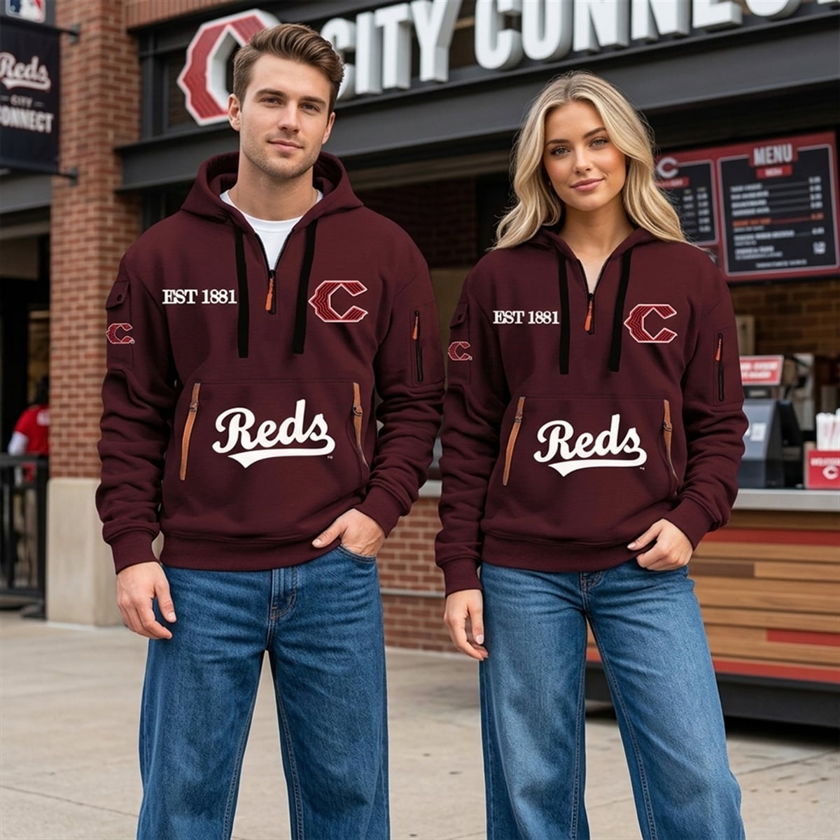 Whether you are cheering from the stadium seats, attending a watch party, or simply representing your favorite team around town, the 2026 Cincinnati Reds EST 1881 Quarter Zip Hoodie is redefining sports apparel. Featuring iconic logos and striking functional details, this garment merges everyday utility with hardcore fandom.