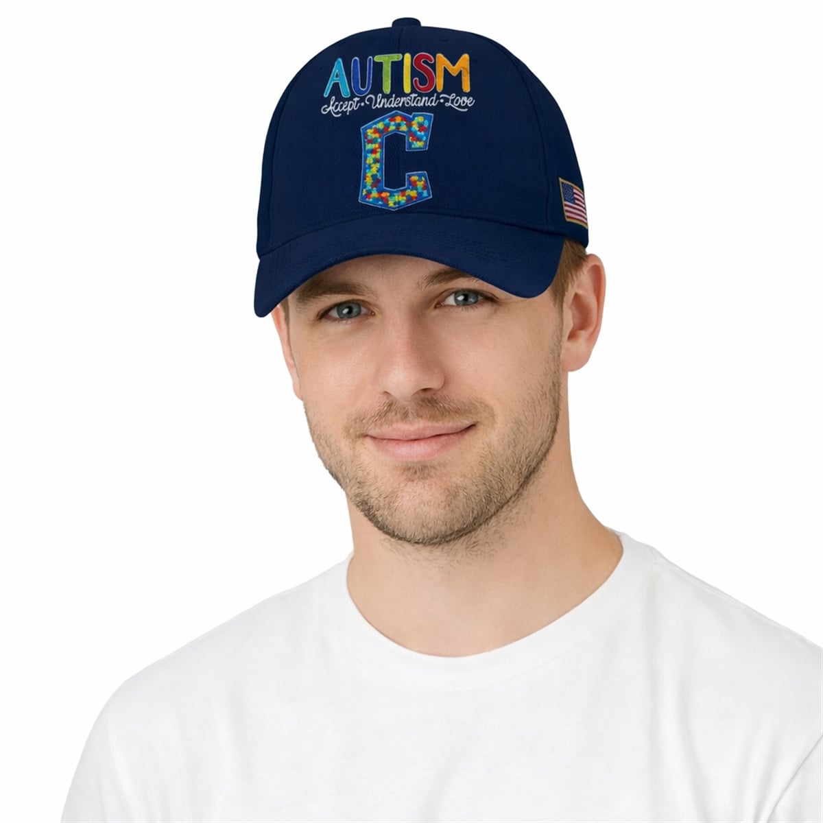 Every visual element on this cap carries profound significance. The core message—”Accept, Understand, Love“—shifts the conversation from mere awareness to active, empathetic embrace of neurodivergent individuals. The puzzle piece motif inside the Cleveland ‘C’ represents the complexity and diversity of the autism spectrum, illustrating how every unique individual fits together to complete the beautiful picture of our community. The distinct, bright colors (blue, red, yellow, and green) symbolize hope, diversity, and the bright futures of those on the spectrum. By wearing this design, you are signaling to the world that you are a safe, understanding, and supportive ally.