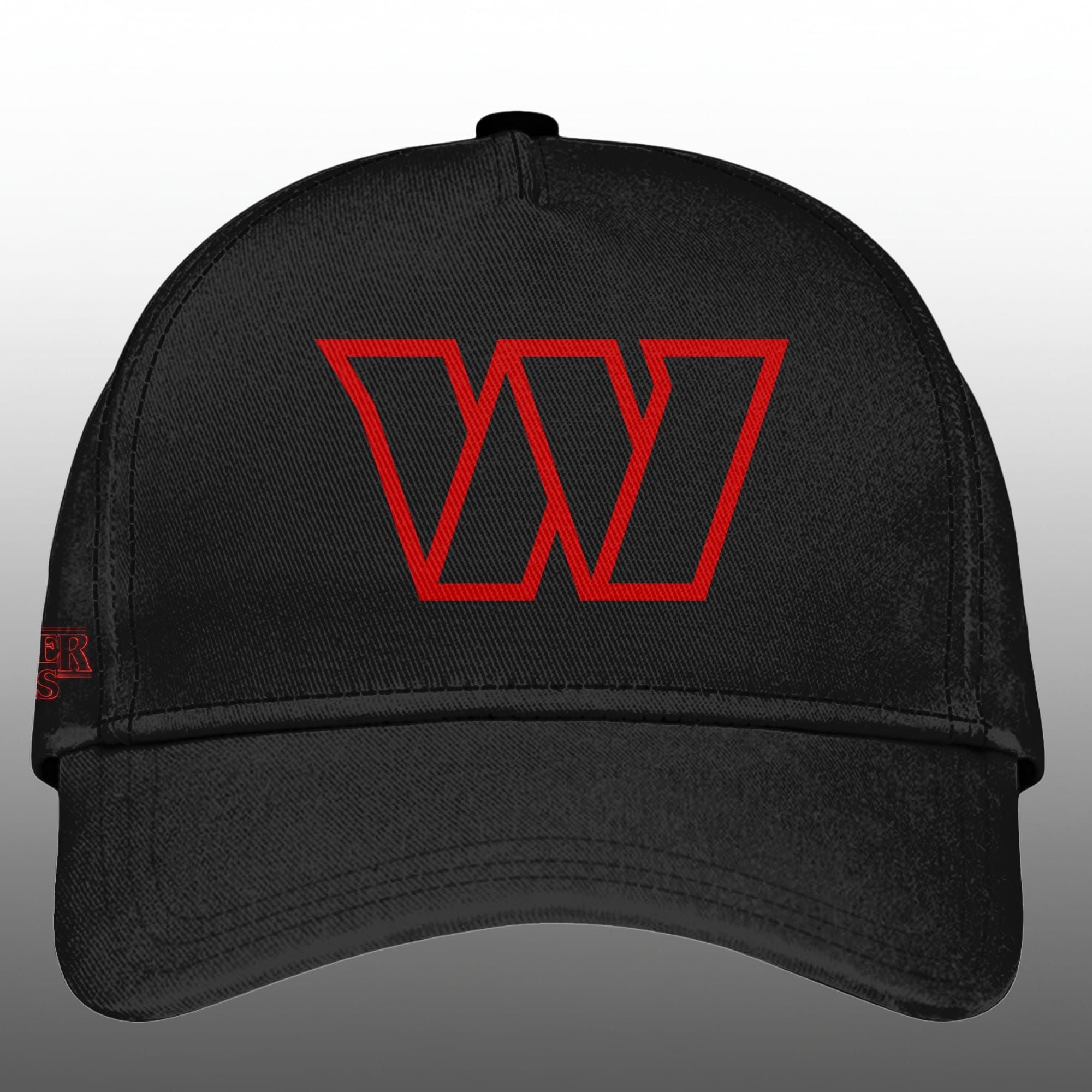 This custom-designed black crewneck sweatshirt features a striking, high-contrast red-on-black design that pays homage to two colossal cultural forces. The front boldly displays the team name, “COMMANDERS,” above the distinct Washington “W” logo. The reverse side, however, is where the portal opens. It showcases the legendary Stranger Things logo in its signature distressed, neon-red font, positioned above an oversized, Upside Down-infused “W” graphic. This is not just a piece of clothing; it’s a wearable collector’s item commemorating the 2026 season excitement and the eagerly anticipated Stranger Things Season 5 finale.