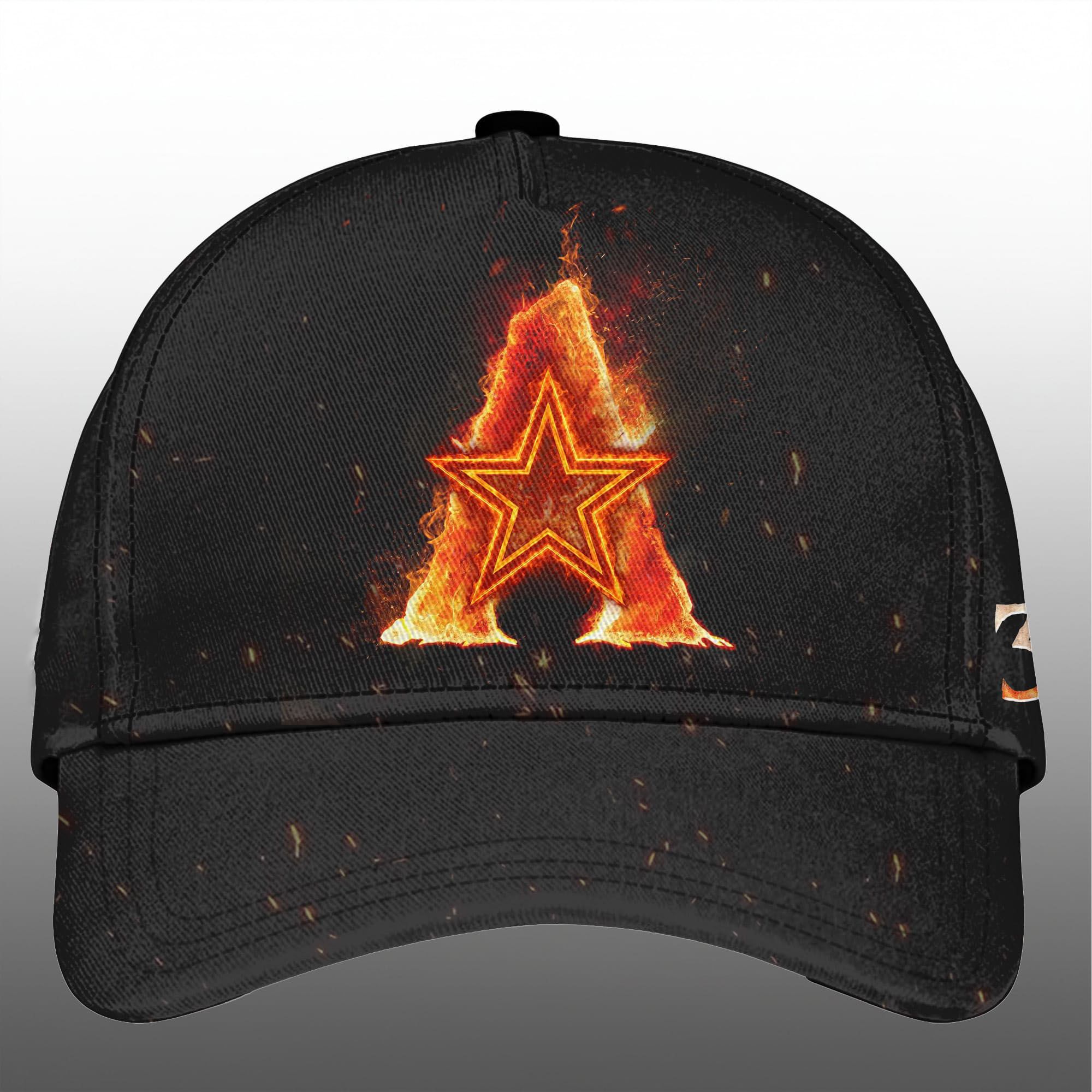 Turn it around, and the back design commands immediate attention. A massive, fiery “A” glyph dominates the space, engulfed in realistic embers and ash effects. At its core sits the Dallas Cowboys Star, symbolizing the fusion of two powerful forces. Below, the text “AVATAR: FIRE AND ASH” anchors the design, marking this as a definitive piece of memorabilia for the 2026 cultural landscape.