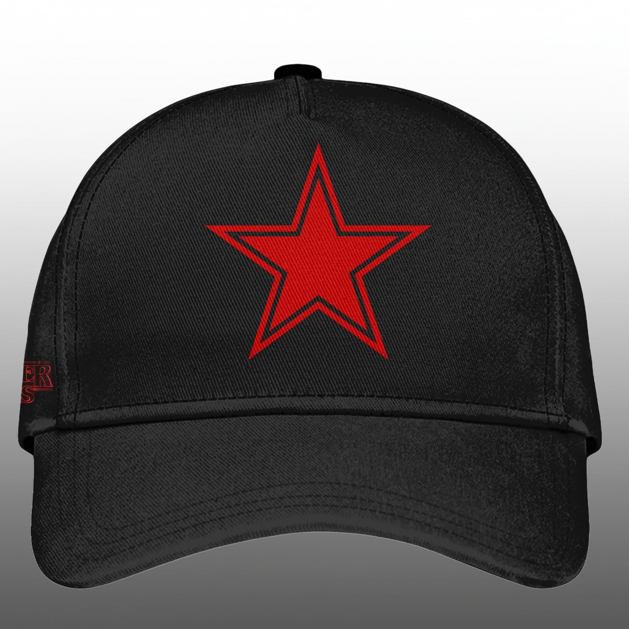 On the front, the word “COWBOYS” is emblazoned in the signature Stranger Things red title font, dramatically placed above a red-lined outline of the classic Dallas Star. The reverse side delivers an even bolder statement, featuring the ominous “STRANGER THINGS” logo from the anticipated Season 5, positioned above a large, stylized Dallas Star, completing the epic mashup.