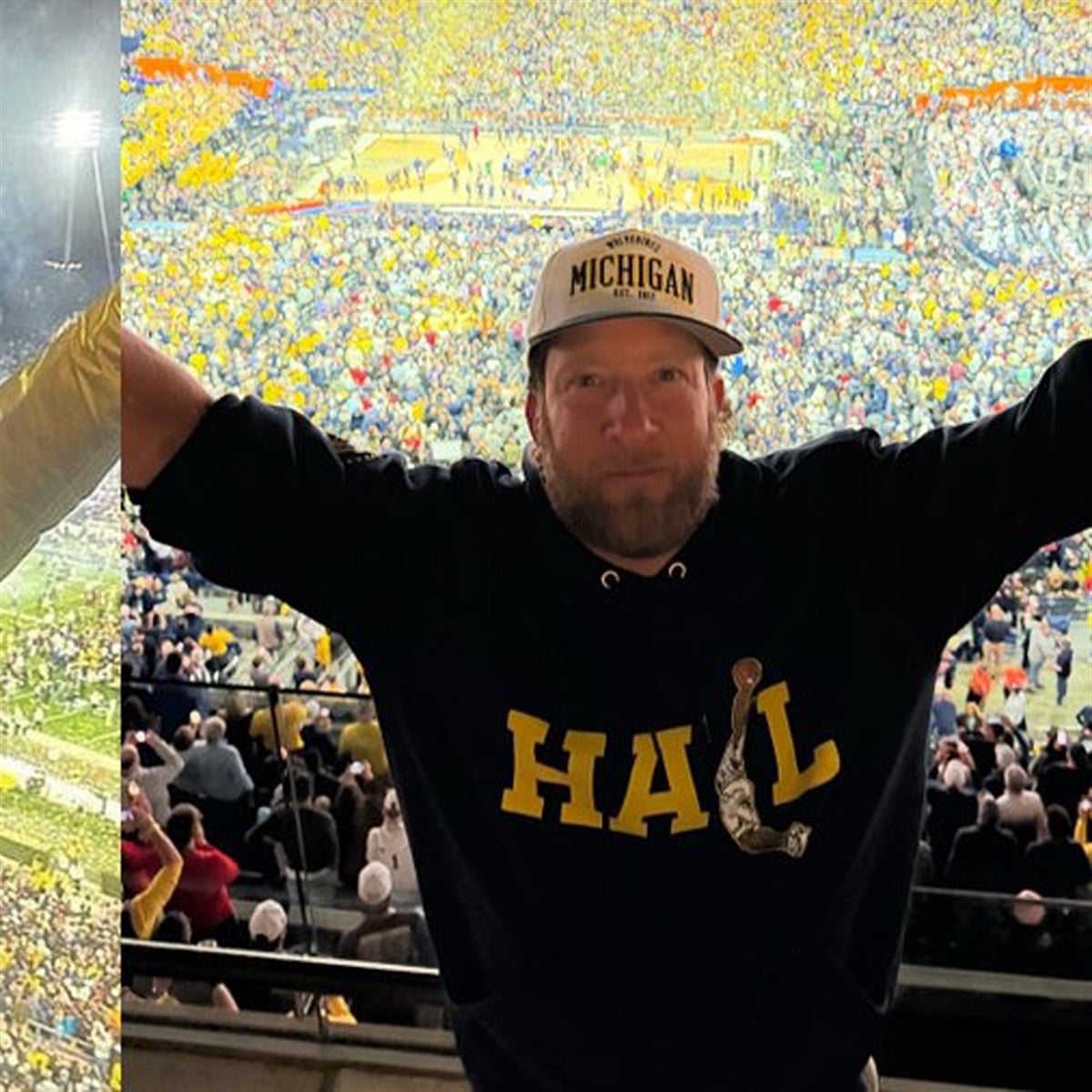 Dave Portnoy was spotted wearing this design during a massive, globally televised Michigan Wolverines victory. His massive social media following immediately began hunting for the exact “HAIL” dunking graphic across every major platform. The brilliant integration of a basketball player forming the letter ‘I’ resonated instantly with die-hard sports fans and streetwear collectors. Within hours of the broadcast, screenshots flooded TikTok and X, cementing this piece as the ultimate 2026 must-have fan apparel.