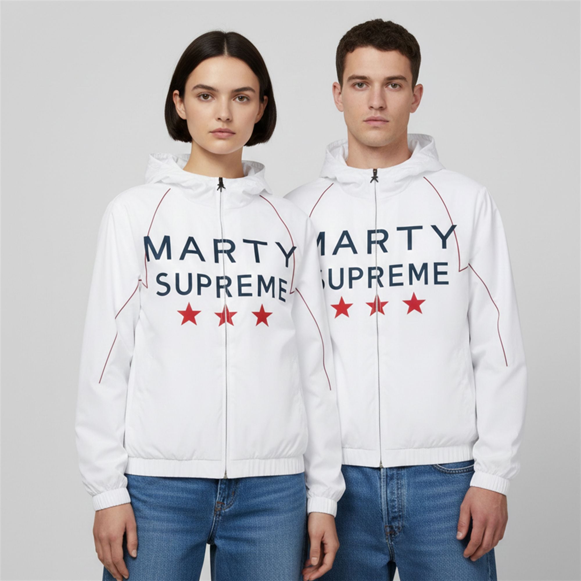 Step into the viral moment that defined late 2025 fashion with the 2026 Declan Rice Marty Supreme England Jacket. This exclusive windbreaker is the exact style gifted to the Arsenal and England midfield maestro as part of the “Gifted to Greatness” campaign for Josh Safdie’s hit film, Marty Supreme.