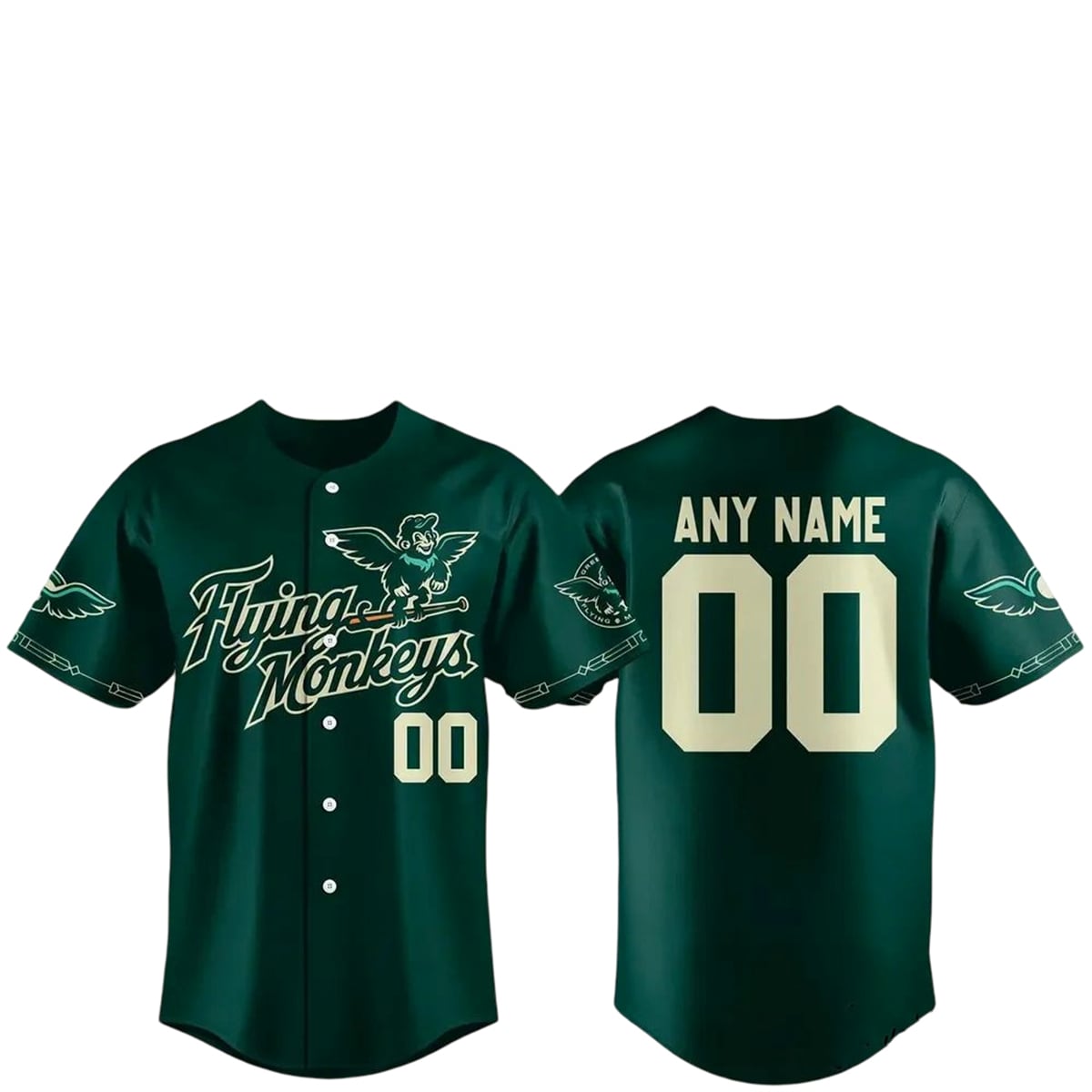 Welcome to the new era of sports fandom where imaginative storytelling and diamond-ready style collide. The 2026 Greenwood Flying Monkeys In Emerald City Jersey offers an unforgettable visual experience featuring iconic dark green script and a fierce winged mascot gripping a baseball bat.