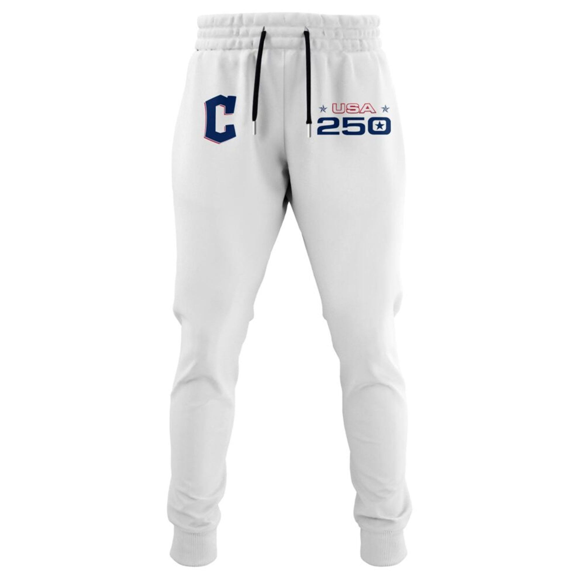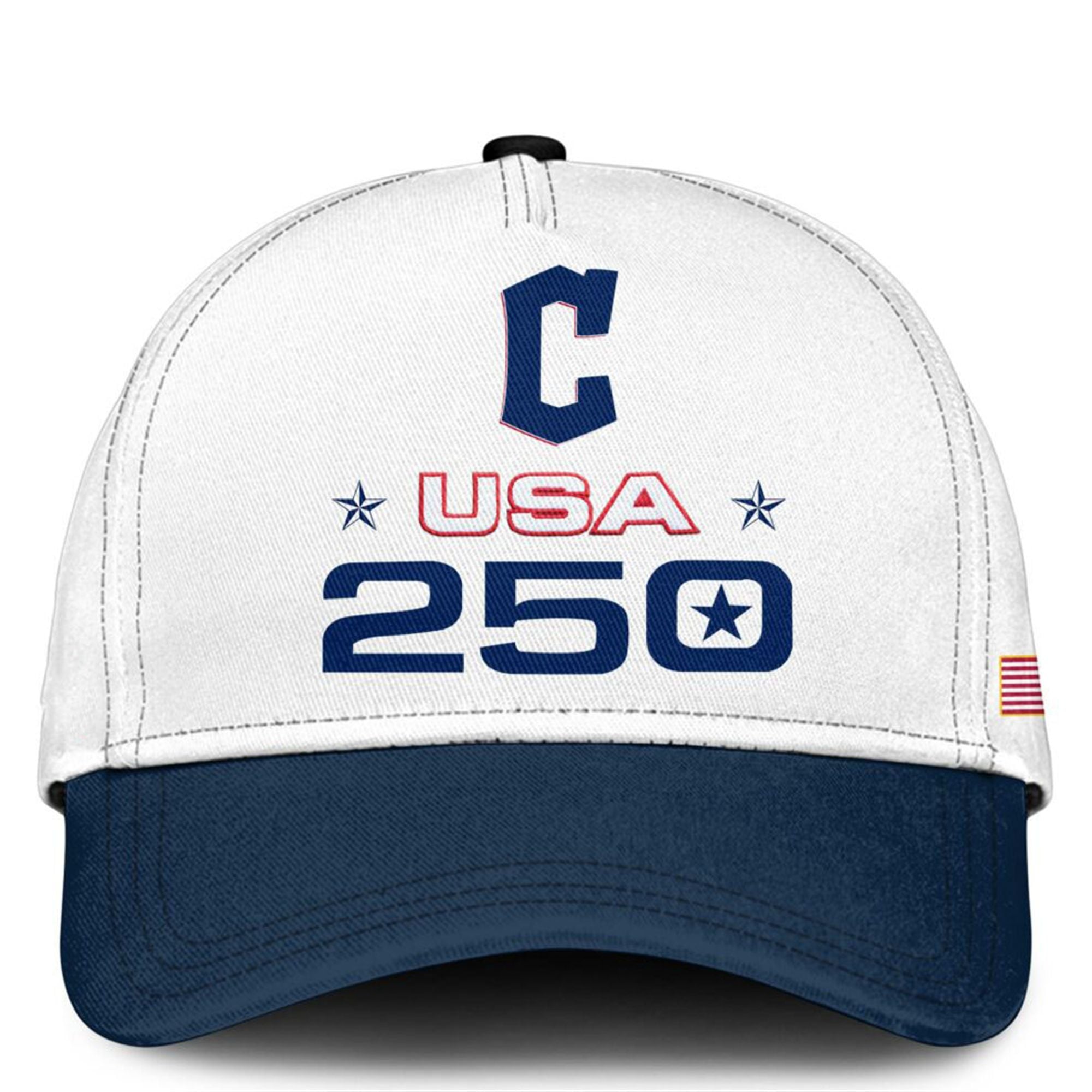 On the reverse, the hoodie transforms into a billboard of city pride and national heritage. The arching “CLEVELAND” text dominates the upper back, sitting proudly above a stylized “USA” graphic flanked by stars. The centerpiece is a massive, block-letter “250,” symbolizing the 250 years of the United States, with the signature Guardians “C” logo anchoring the design at the hem. Every graphic element is placed to ensure maximum visibility, making it perfect for stadium wear or street photography.