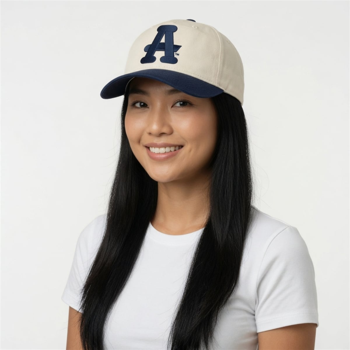 The hat is a limited-edition promotional item designed to honor one of the most resilient franchises in Negro League history. Visually, the hat features a striking two-tone colorway, presenting a clean, ivory-colored crown paired perfectly with a contrasting navy blue visor and matching top button. Front and center is the defining feature: a bold, navy blue, stylized “A” intersected by a horizontal crossbar. This historic logo is instantly recognizable to sports historians and vintage apparel fans.