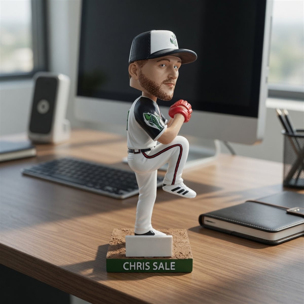 The bobblehead is a premier promotional collectible originally slated for the franchise’s marquee August 8 matchup. Featuring the iconic left-handed pitcher mid-windup, this item uniquely dresses Sale in the Gwinnett Stripers uniform rather than his standard major league gear. The design pays specific homage to his unforgettable 2025 rehab assignment, a critical stepping stone in his career timeline following his triumphant 2024 National League Cy Young Award-winning campaign. Standing on a branded dirt-textured base with a pristine home plate, the figure captures his intense focus and signature pitching mechanics. By bridging the gap between Triple-A grit and major league glory, this item stands as a distinct, highly sought-after artifact in the 2026 baseball memorabilia landscape.