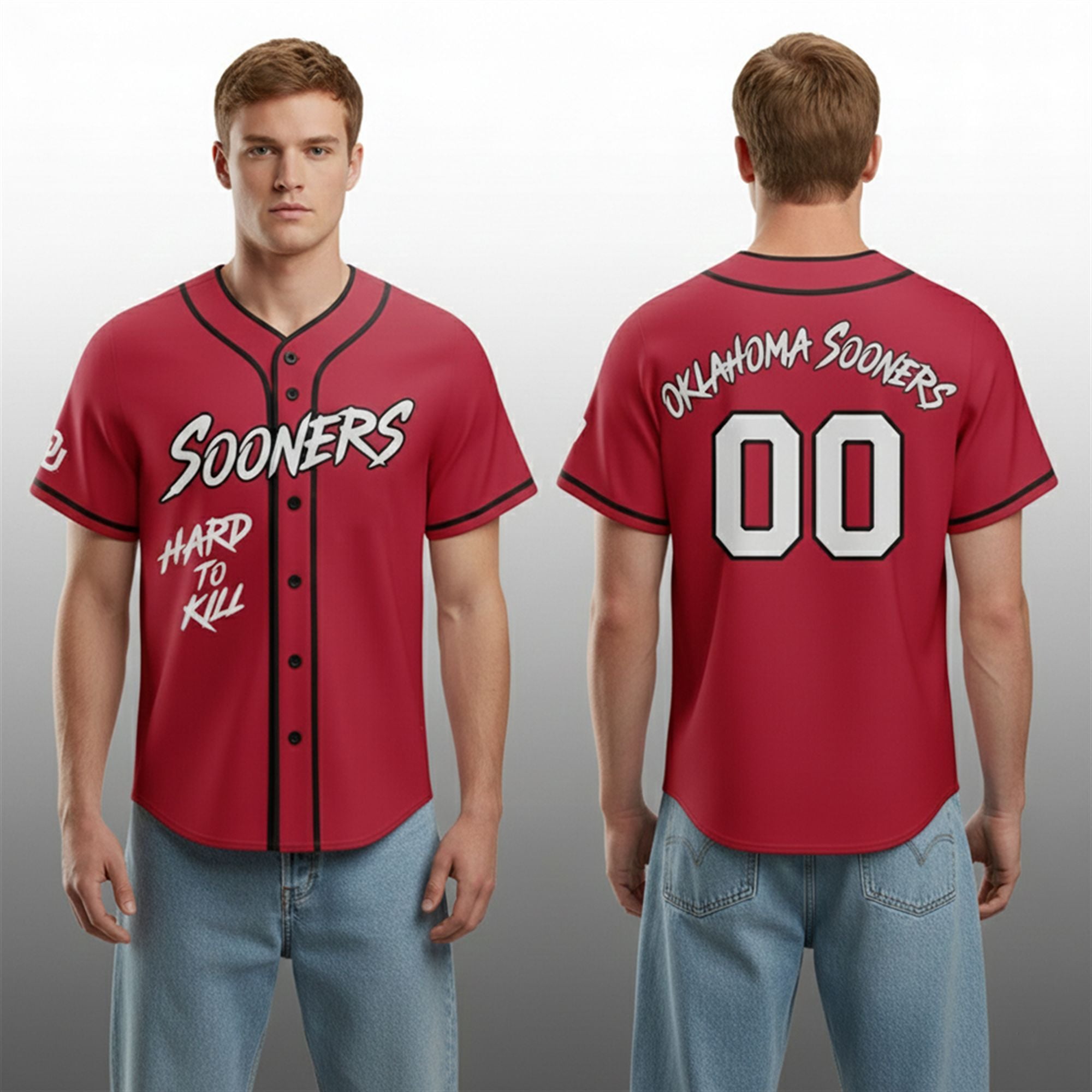 Step up your game day fit with the ultimate crossover of streetwear style and stadium spirit. The 2026 Hard To Kill Oklahoma Sooners Jersey merges the trending oversized baseball aesthetic with the grittiest slogan in Oklahoma history.