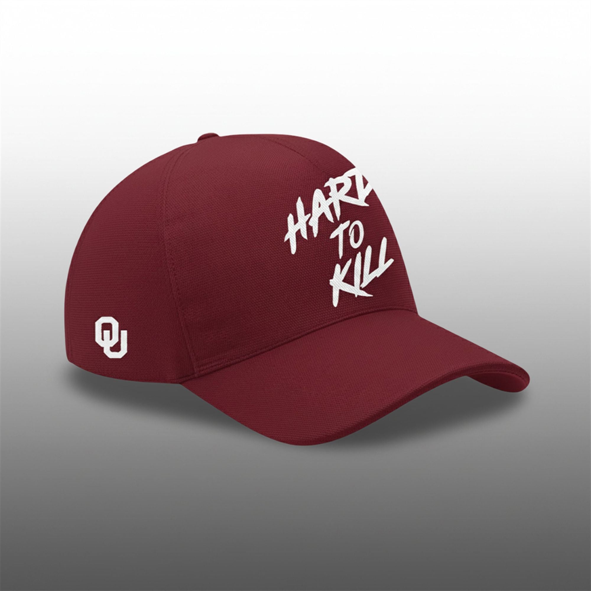 The design features a bold Crimson body with sleek black piping that frames the silhouette perfectly. The front showcases “Sooners” in a sharp, classic script, juxtaposed against the edgy, distressed “HARD TO KILL” graphic on the lower right—a direct nod to the season’s viral motto. The back is emblazoned with a large “OKLAHOMA SOONERS” arch and the number 00, representing the unity of the fan base (or customizable to your preference).