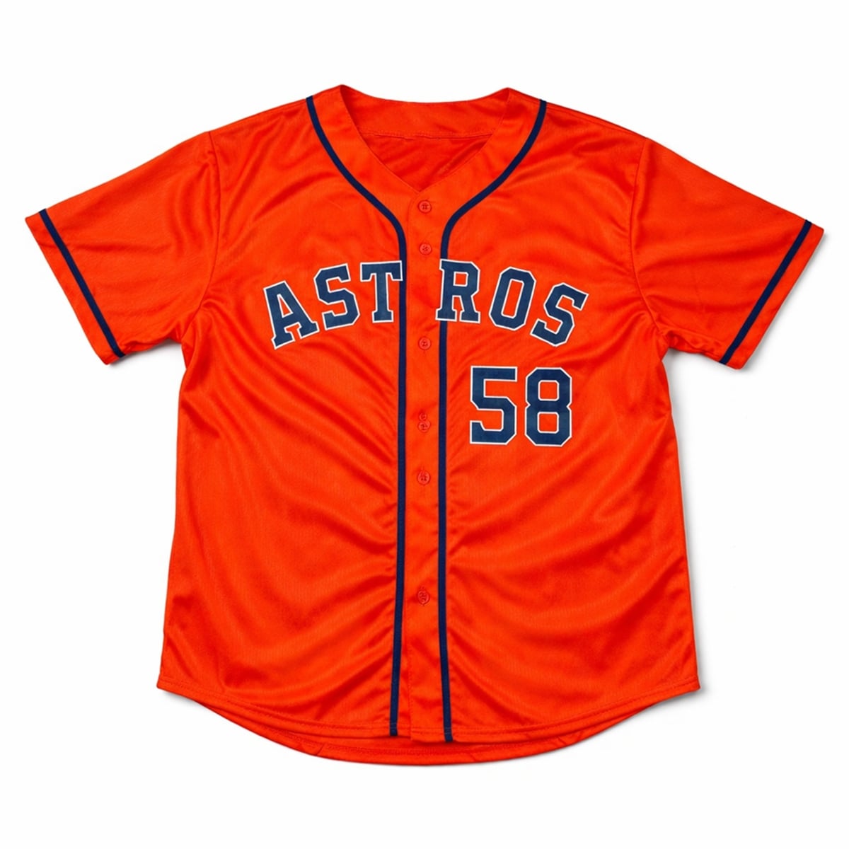 The jersey is a highly sought-after collectible released during a dedicated fan appreciation event in the 2026 season. Showcasing the traditional and beloved Astros vibrant orange colorway, the front proudly displays the “ASTROS” wordmark in deep navy blue with a crisp white outline. The front also features Brown’s signature number “58” prominently displayed, allowing fans to boldly represent their favorite pitcher. As a giveaway item, it holds a unique place in sports memorabilia, representing a specific moment in time for the franchise and its dedicated fanbase.