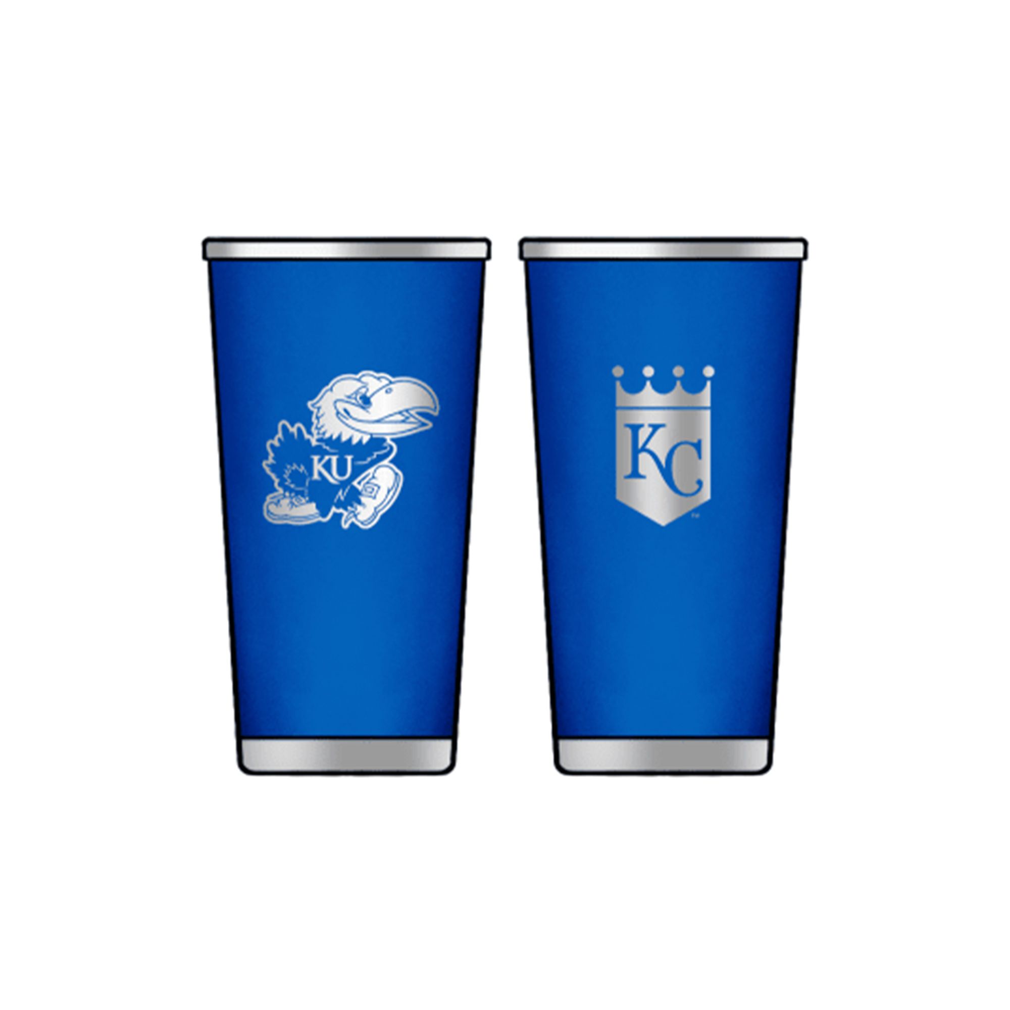 The tumbler is a special-edition promotional item released exclusively in conjunction with the beloved “KU Night at the K” theme ticket event. Visually striking and instantly recognizable, the exterior is bathed in a vibrant, signature blue that perfectly represents both the Kansas City Royals and the University of Kansas.
