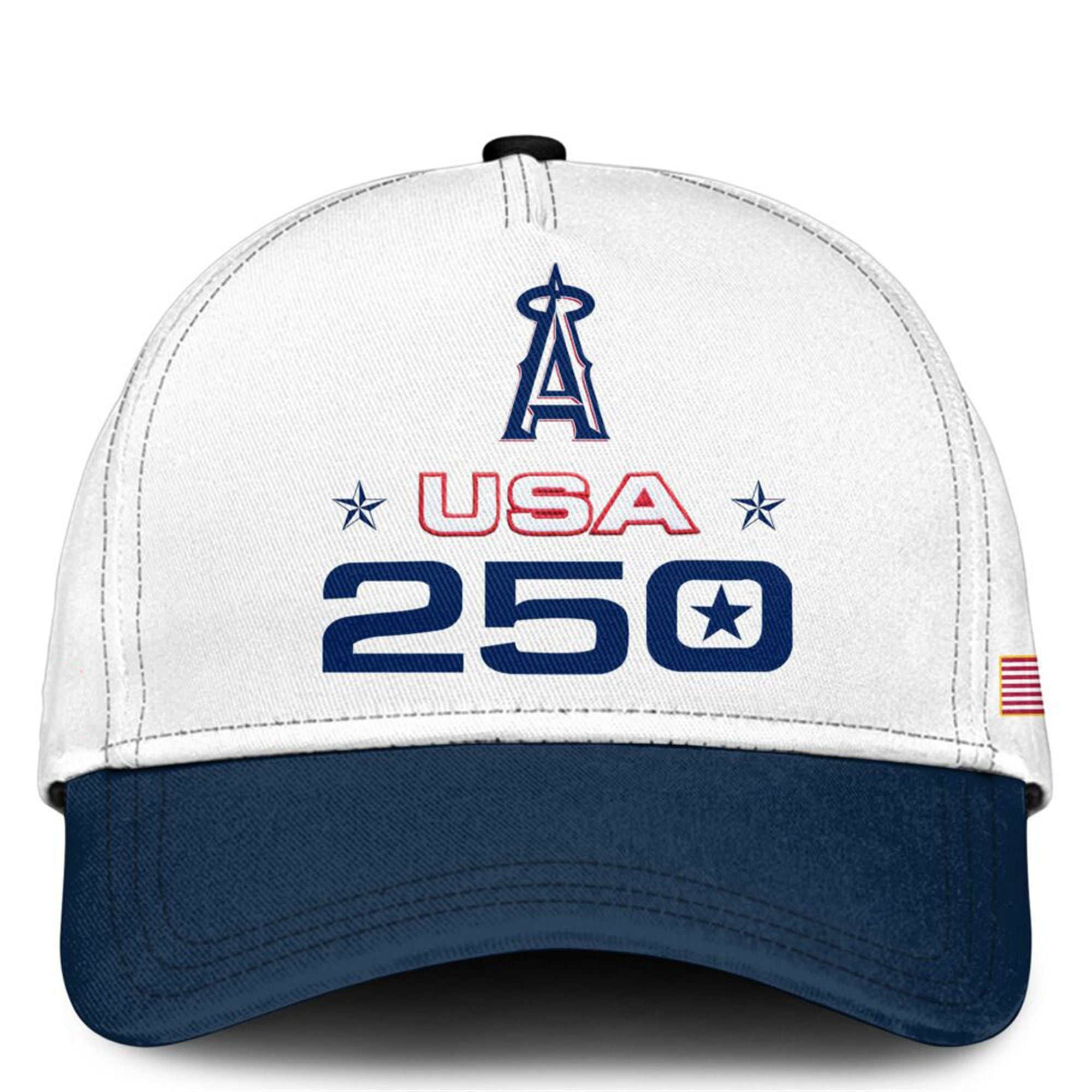 The front of the hoodie showcases the classic arched “ANGELS” typography, flanked by the “America 250” ribbon logo, signifying participation in the national Semiquincentennial event. The sleeve features a sharp American flag detail, while the back makes a massive statement with “LOS ANGELES USA 250” and the year’s commemorative star logo. It is a cohesive look that aligns perfectly with the “Sport and Spirit” trend dominating 2026 fashion.