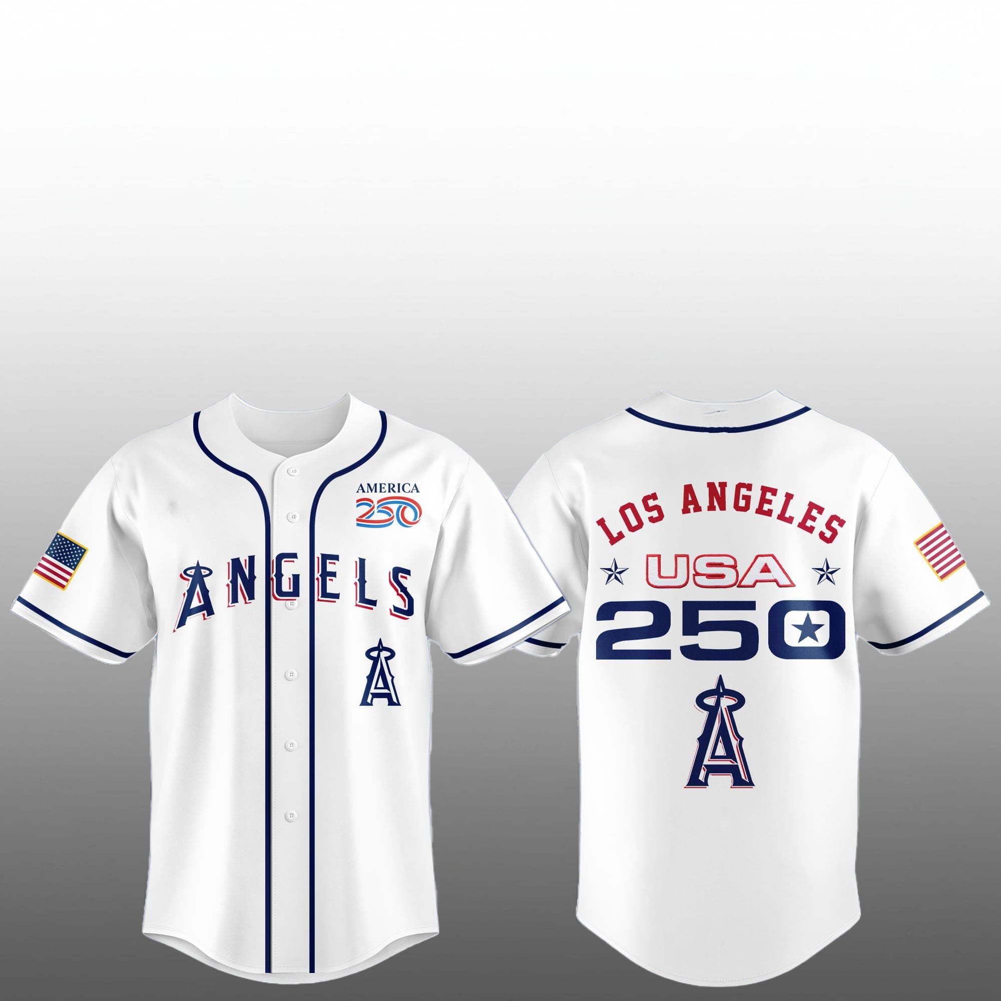 The jersey is the ultimate fusion of sports fandom and national heritage. Designed specifically for the United States Semiquincentennial, this jersey reimagines the classic Angels visual identity through a patriotic lens.