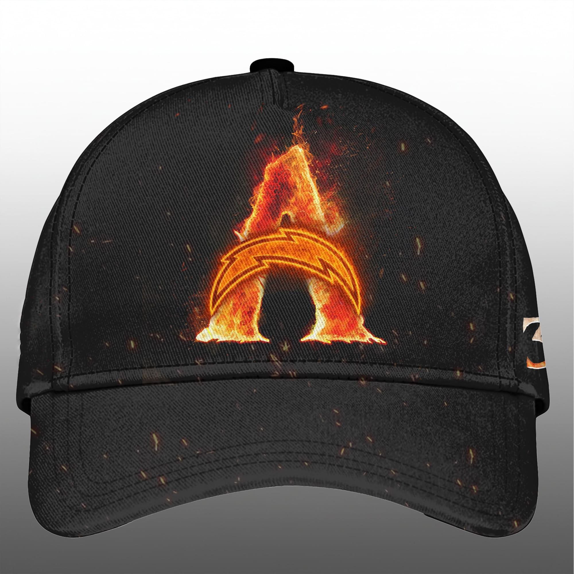 On the front, the classic Chargers wordmark is rendered in a stone-like, ancient texture, illuminated by the glowing orange embers of the lightning bolt logo below it. It looks as if the bolt has been forged in the volcanoes of the Fire Na’vi. The back of the hoodie showcases a massive, flaming “A” logo—synonymous with the Avatar franchise—engulfed in flames, sitting above the subtitle “FIRE AND ASH.” Drifting ember particles are printed throughout the sleeves and torso, giving the garment a dynamic, moving appearance.