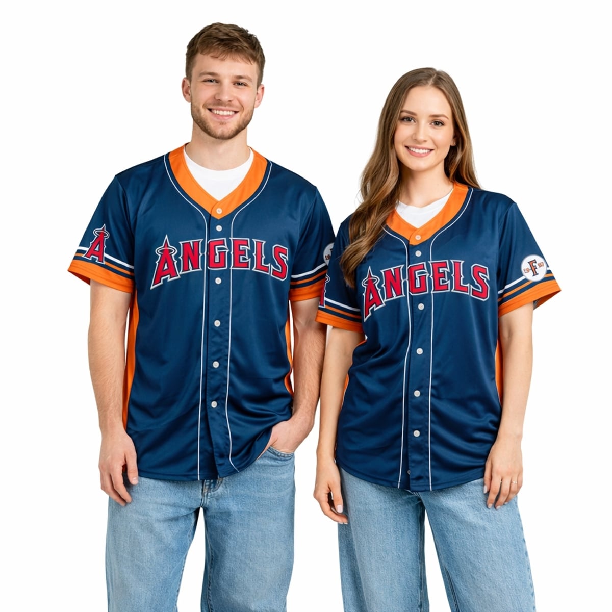 The jersey is a masterful visual tribute to the enduring relationship between the Los Angeles Angels and the local community. The design features a deep navy blue body contrasted sharply with vibrant orange side panels and collar trim, instantly recognizable as the signature colors of the CSUF Titans. Across the chest, the classic “ANGELS” typography is rendered in striking red with a white outline, maintaining the undeniable identity of the franchise. The back of the jersey proudly displays “CAL STATE FULLERTON” in a stylized, bold orange font, ensuring your collegiate allegiance is visible from every angle.