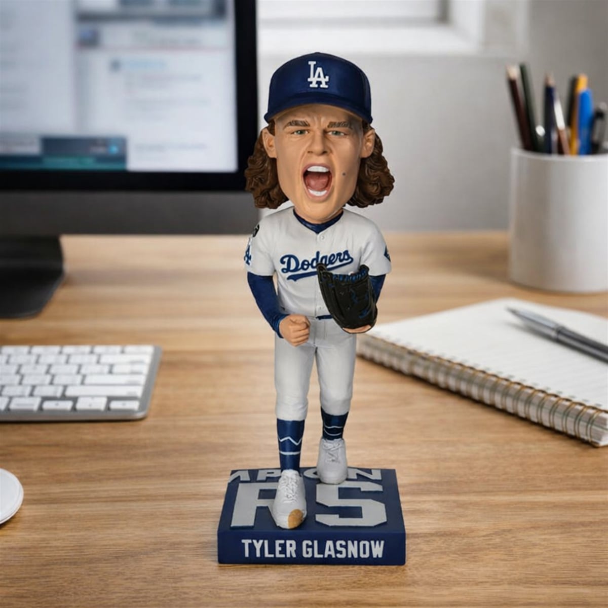 Beyond functioning as a traditional sports figure, this specific bobblehead represents the raw emotion and psychological warfare inherent in major league pitching. Glasnow’s roaring expression symbolizes the explosive release of tension after a crucial, inning-ending strikeout and the unbreakable mental will required to dominate the sport at its highest level. It successfully translates the kinetic, chaotic energy of a live baseball game into a static, yet highly expressive, piece of visual art. This collectible resonates deeply with anyone who understands the heart of competition, reflecting the grit, determination, and fiery passion that define the culture of Los Angeles.