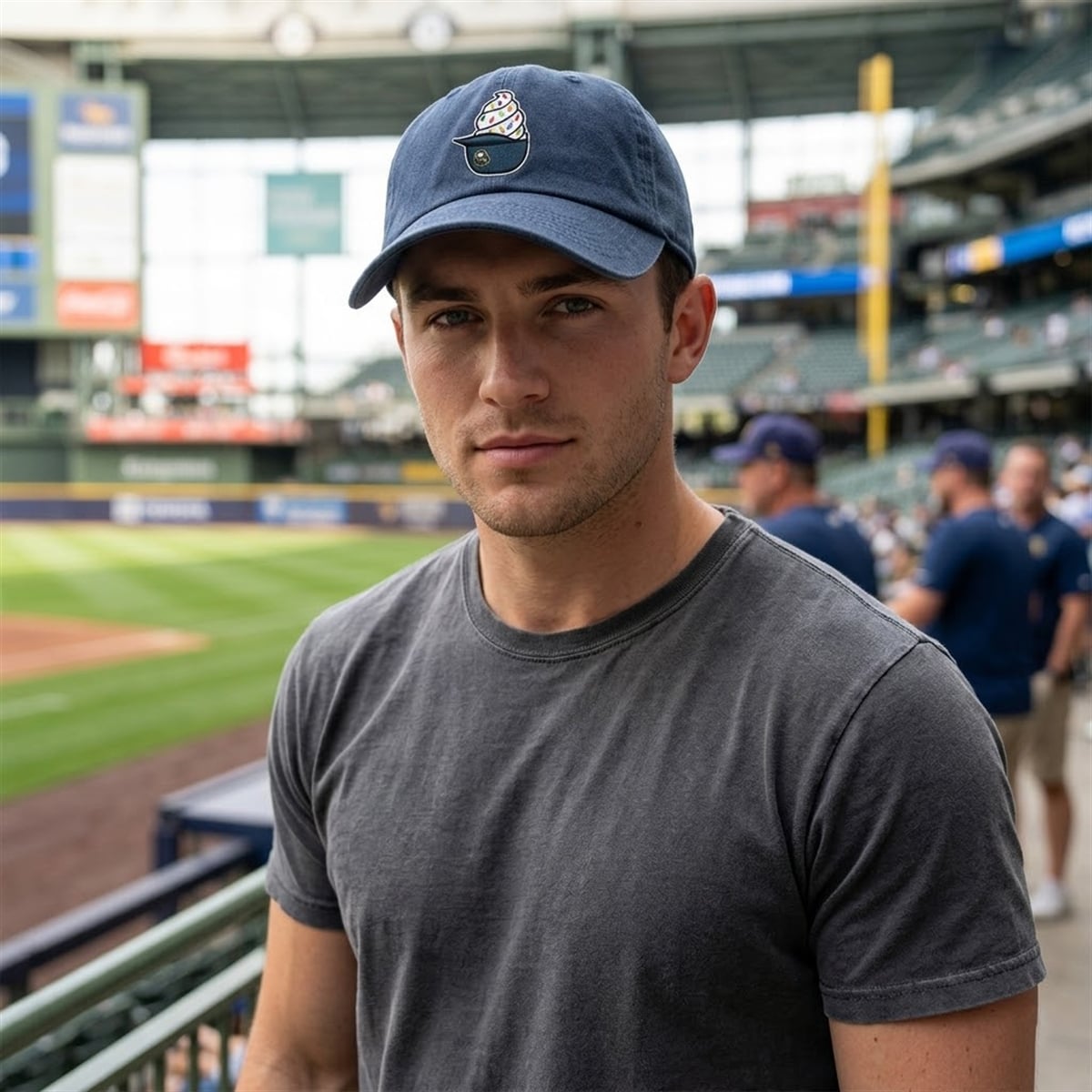 The hat took a bold, imaginative leap by shifting the focus from architectural landmarks to the shared, universally loved experiences of the fans themselves. At the center of this celebrated release is the hat. Visually, the cap presents a deep, classic navy blue canvas that perfectly highlights the front-and-center artwork: a towering swirl of vanilla soft serve, dotted with colorful sprinkles, resting inside a miniature Brewers souvenir helmet.
