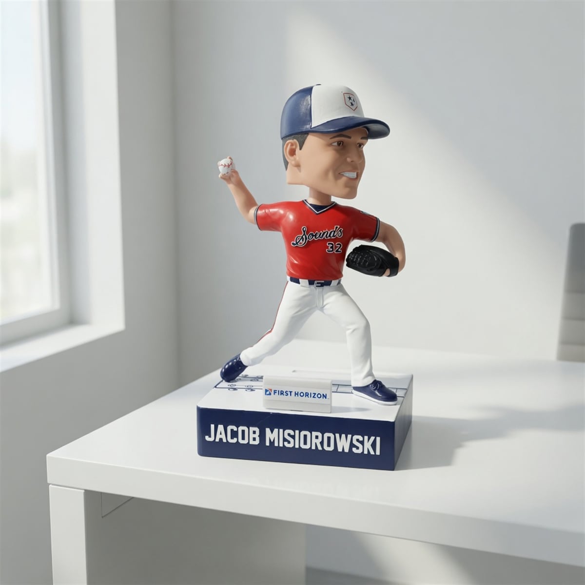 Every visual element of this bobblehead carries a deliberate narrative weight. Misiorowski is depicted in the Sounds’ vibrant red uniform, a color representing the fiery, energetic atmosphere of game days at First Horizon Park. His aggressive, mid-throw posture symbolizes the raw power and determination that has defined his scouting reports. Most importantly, the guitar neck base serves as a profound nod to “Music City.” It bridges the gap between the rhythmic, artistic soul of Nashville and the rhythmic, precise art of pitching. It transforms the item from a mere likeness into a cultural monument, celebrating the synergy between the community and its local team.