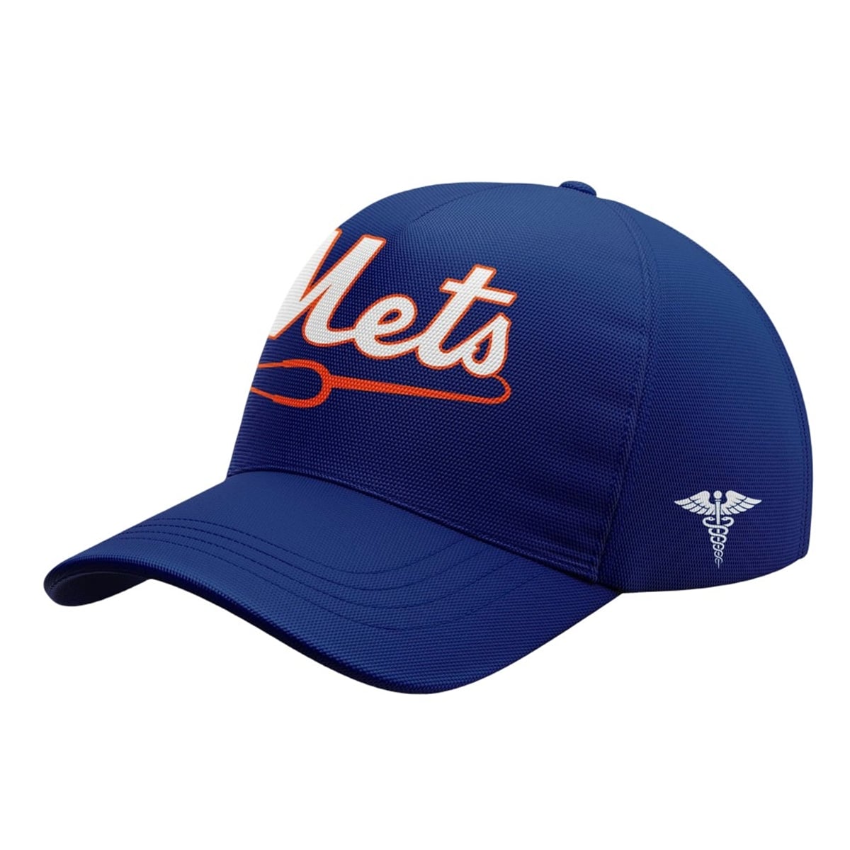 The jersey is a visually striking reimagining of traditional baseball aesthetics. Draped in the team’s classic royal blue, this item features a brilliant fusion of the beloved Mets typography and universal healthcare imagery. The front of the garment showcases the iconic “Mets” script in orange and white, but with a brilliant twist: the sweeping tail of the wordmark elegantly transforms into a stethoscope, curling around a secondary interlocking NY logo.