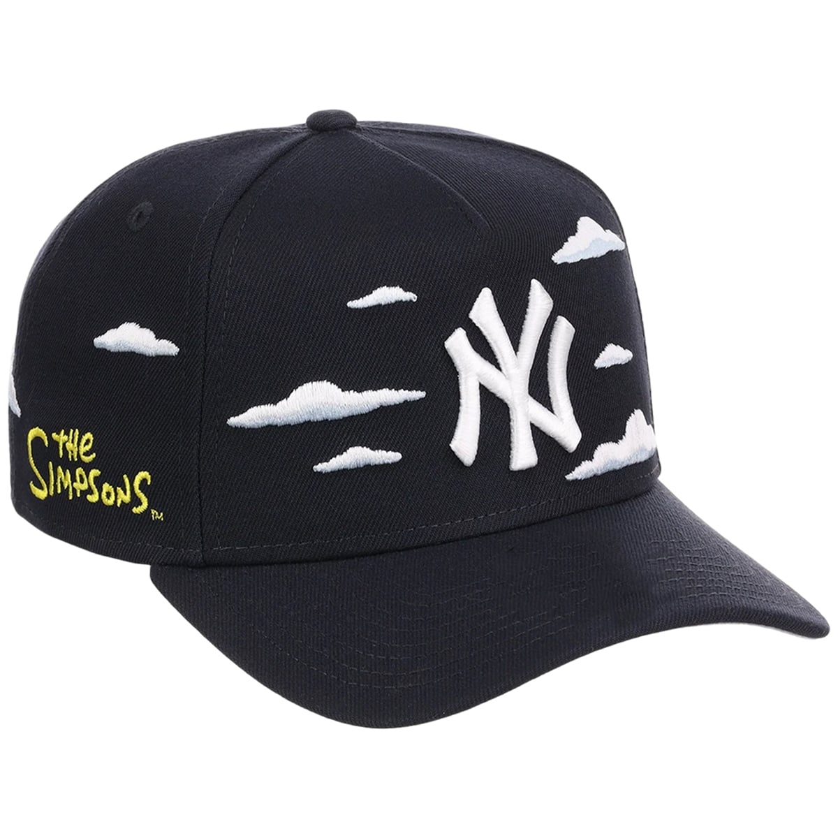 Taking center stage is the world-famous, interlocking ‘NY‘ Yankees logo, completely reimagined for this collaboration. The emblem pops off the front in a vibrant, unmistakable “Simpsons Yellow,” bordered by a sharp black outline that mimics the ink lines of comic books and classic animation cels. Completing the look, the side profile proudly bears the classic “The Simpsons” title logo, cementing the nature of this highly sought-after crossover. This item is entirely about the aesthetic experience, offering a visual feast that bridges two massive global fandoms into one cohesive, wearable art piece.