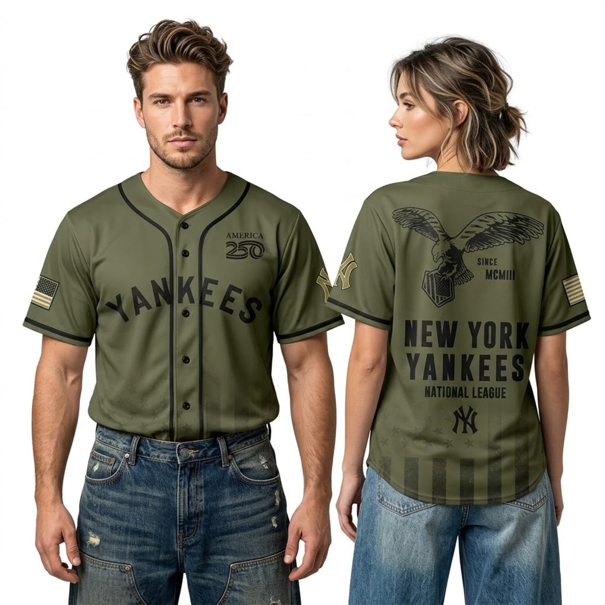 Step into a monumental year of historical celebration with the 2026 NY Yankees Armed Forces Day Jersey. Designed to honor the upcoming Semiquincentennial of the United States, this distinct olive-green masterpiece bridges the gap between legendary baseball heritage and profound national pride.